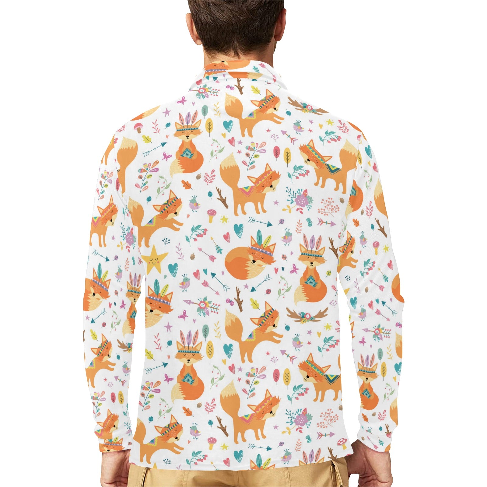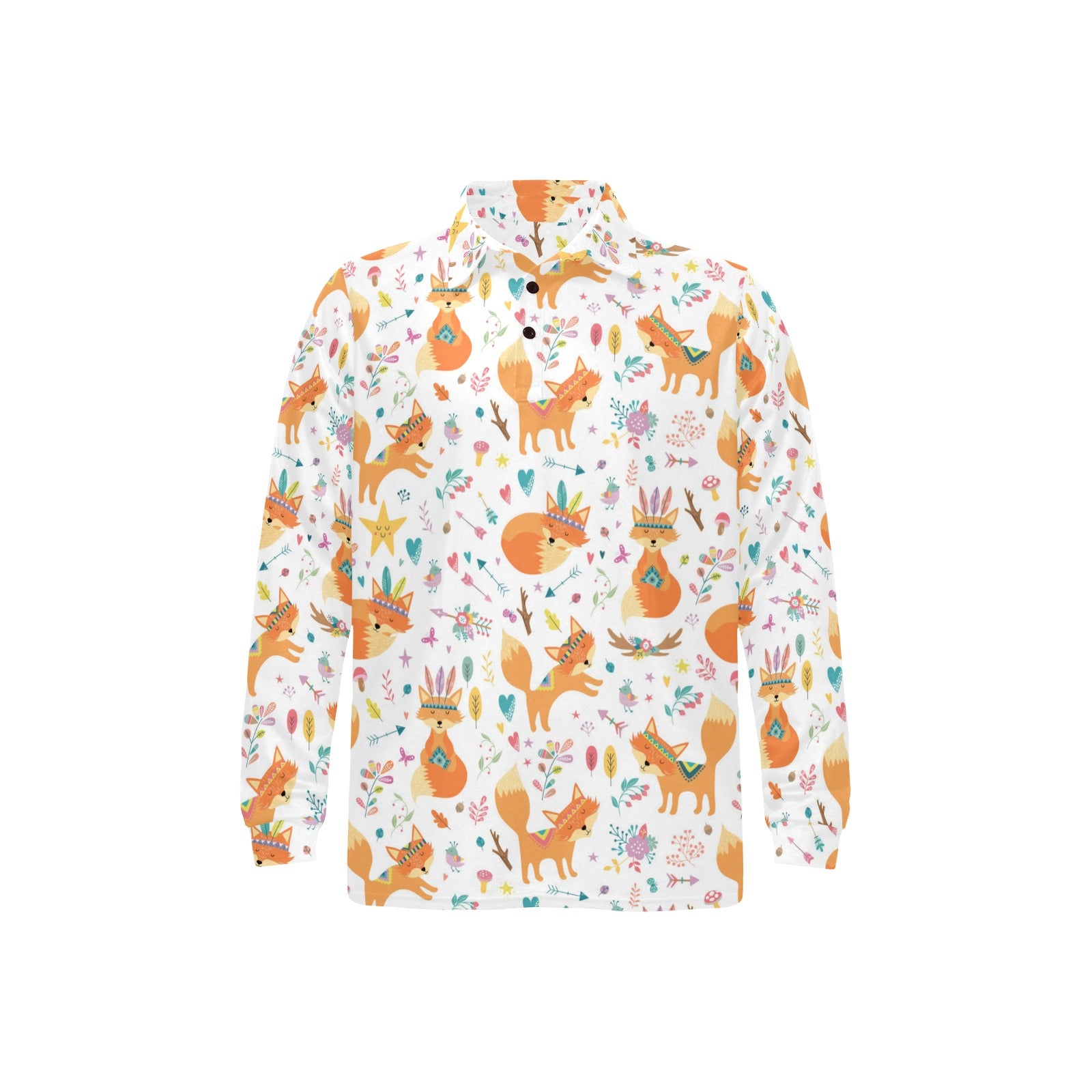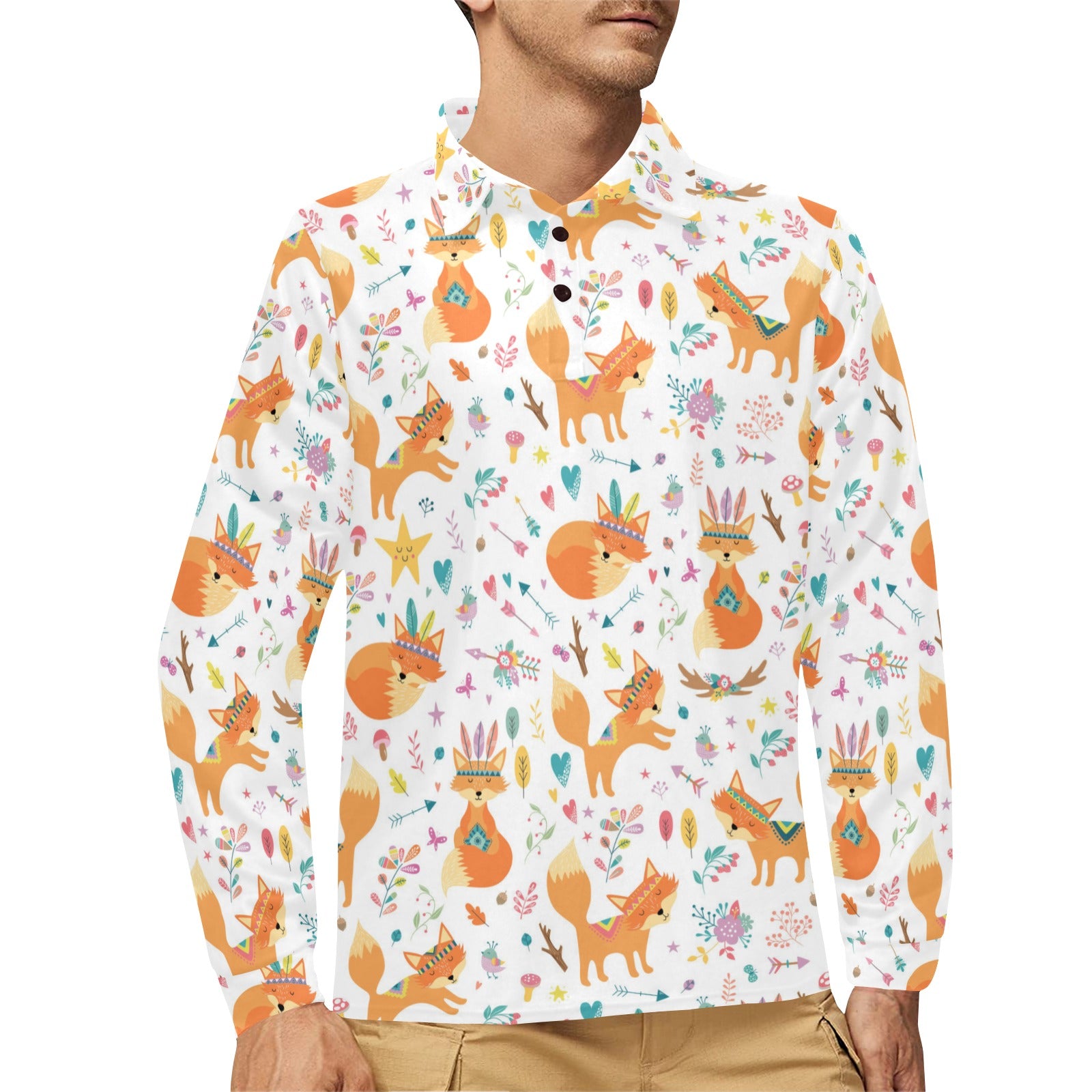 cute tribal fox pattern Men's Long Sleeve Polo Shirt