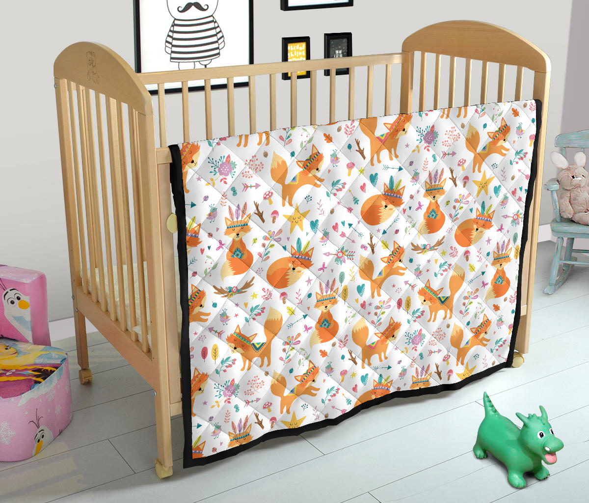 Cute Tribal Fox Pattern Premium Quilt is a uniqued design and limited item. It made to order, hand printed, and sewn with love in our factory.