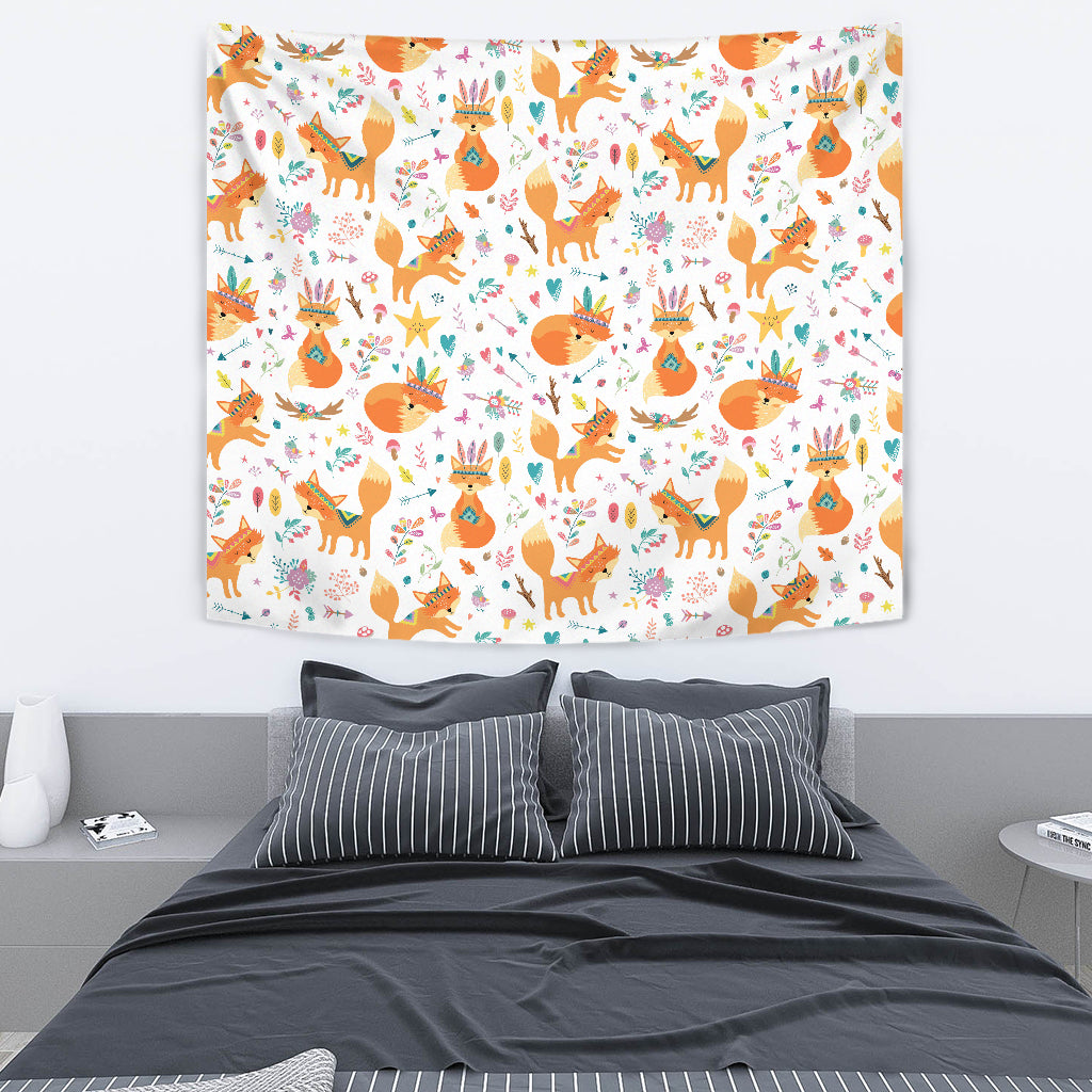 Cute Tribal Fox Pattern Wall Tapestry
