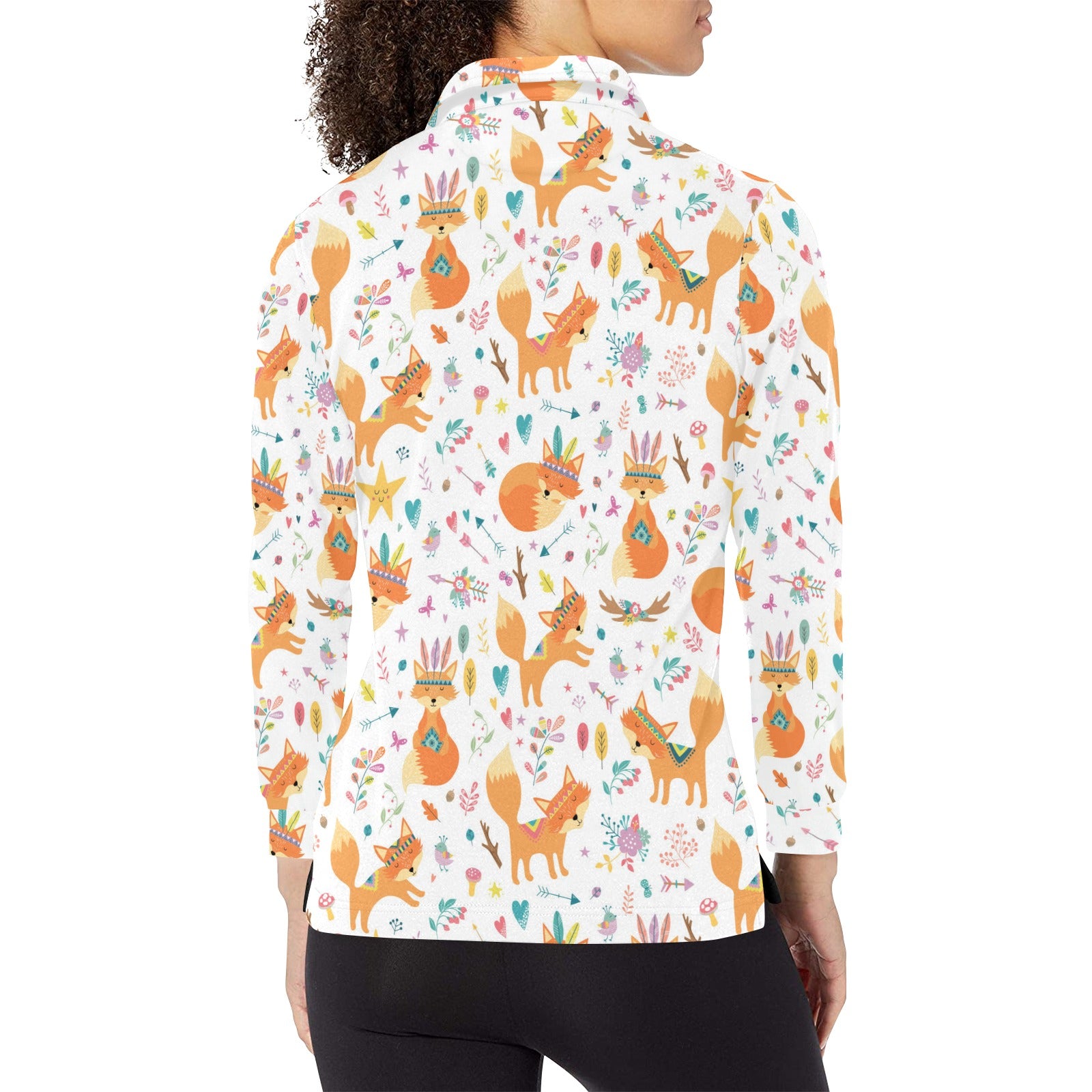 cute tribal fox pattern Women's Long Sleeve Polo Shirt