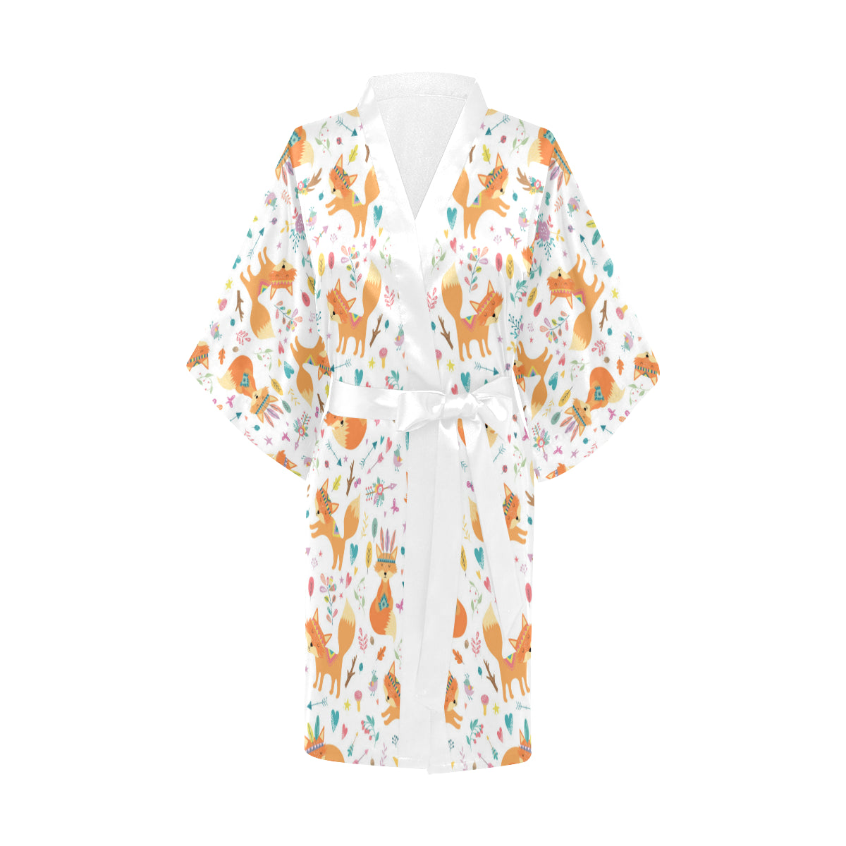 cute tribal fox pattern Women's Short Kimono Robe is a uniqued design and limited item. It made to order, hand printed, and sewn with love in our factory.