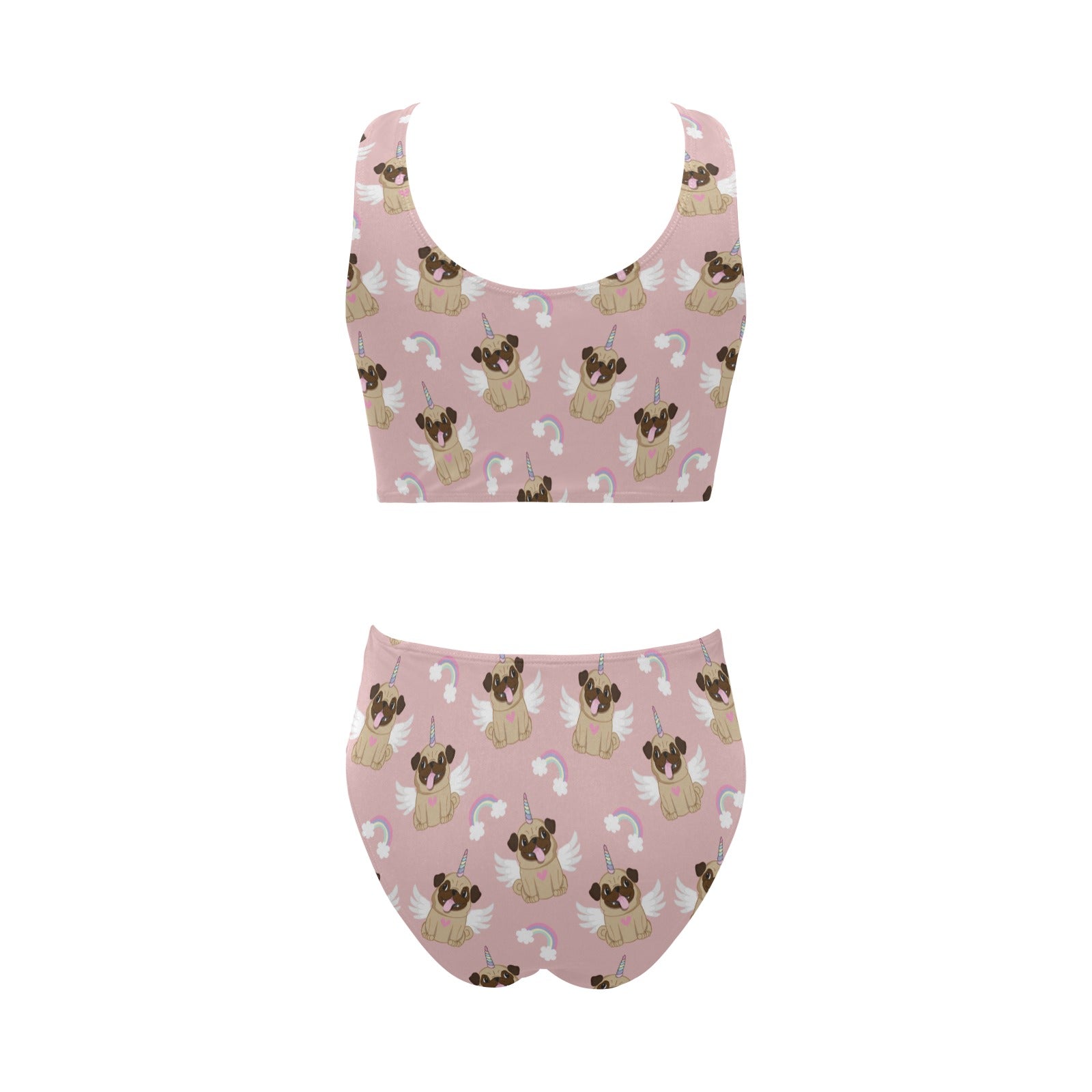Cute unicorn pug pattern Chest Bowknot High Waisted Bikini Swimsuit