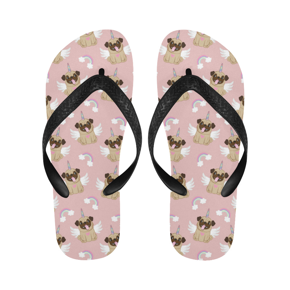 Cute unicorn pug pattern Unisex Flip Flops is a uniqued design and limited item. It made to order, hand printed, and sewn with love in our factory.