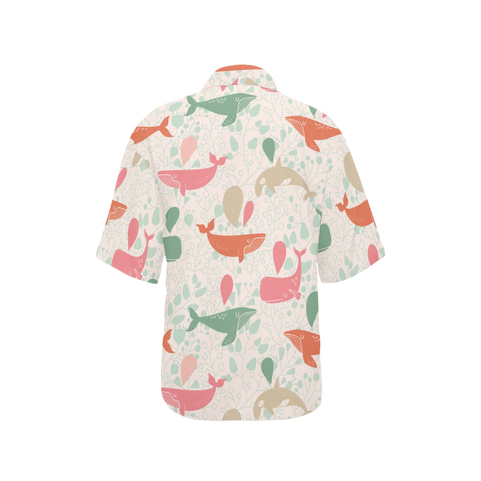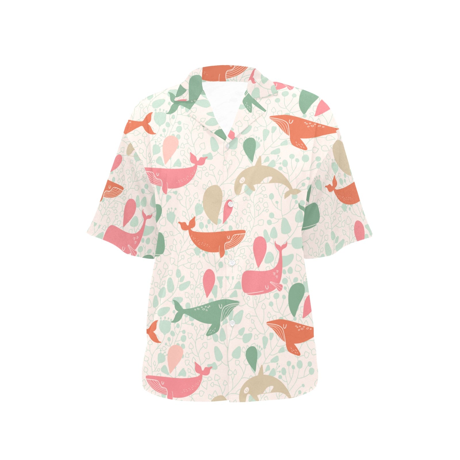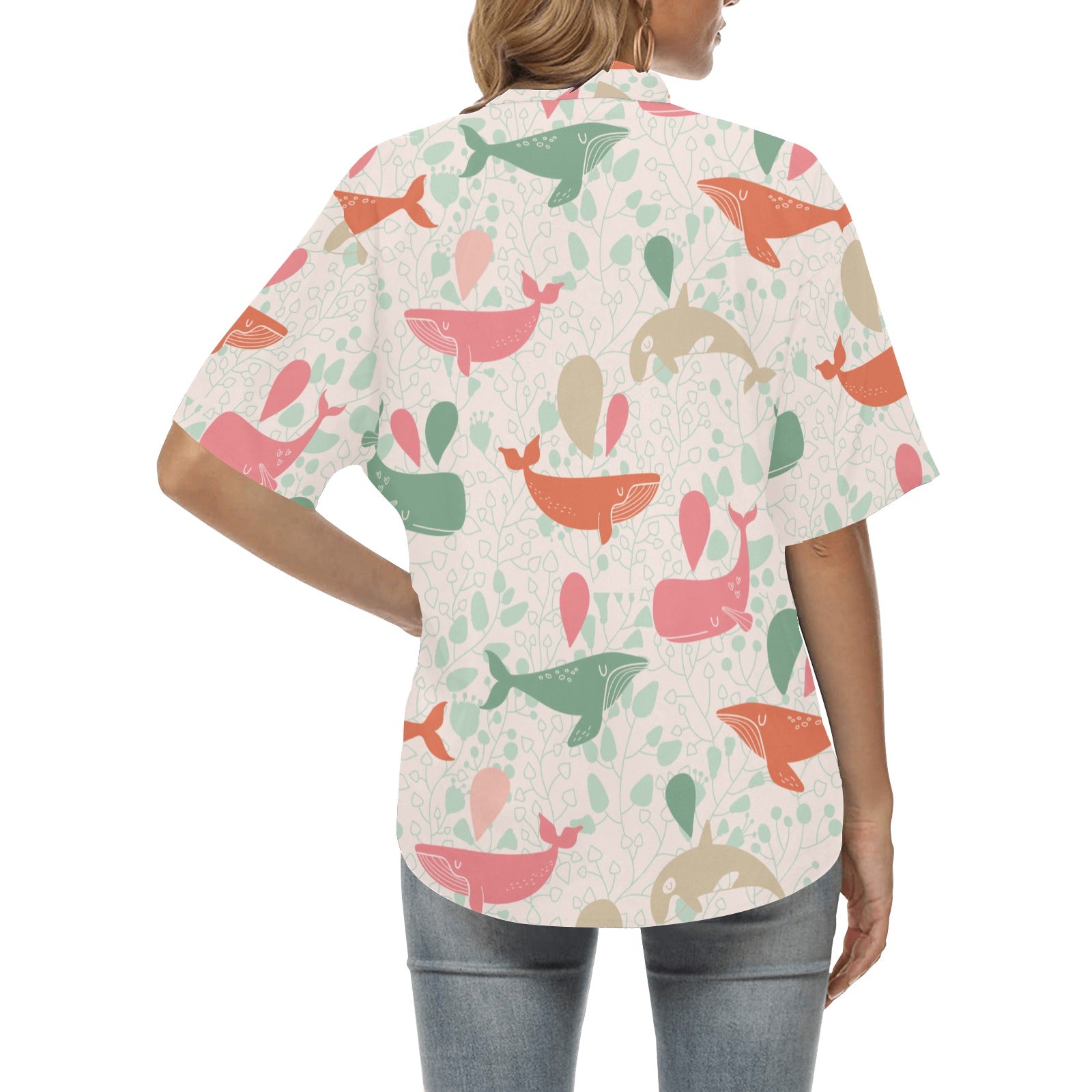 Cute whale pattern Women's All Over Print Hawaiian Shirt