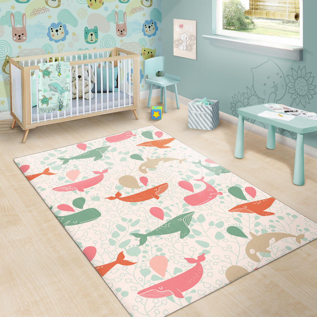Cute whale pattern Area Rug is a uniqued design and limited item. It made to order, hand printed, and sewn with love in our factory.