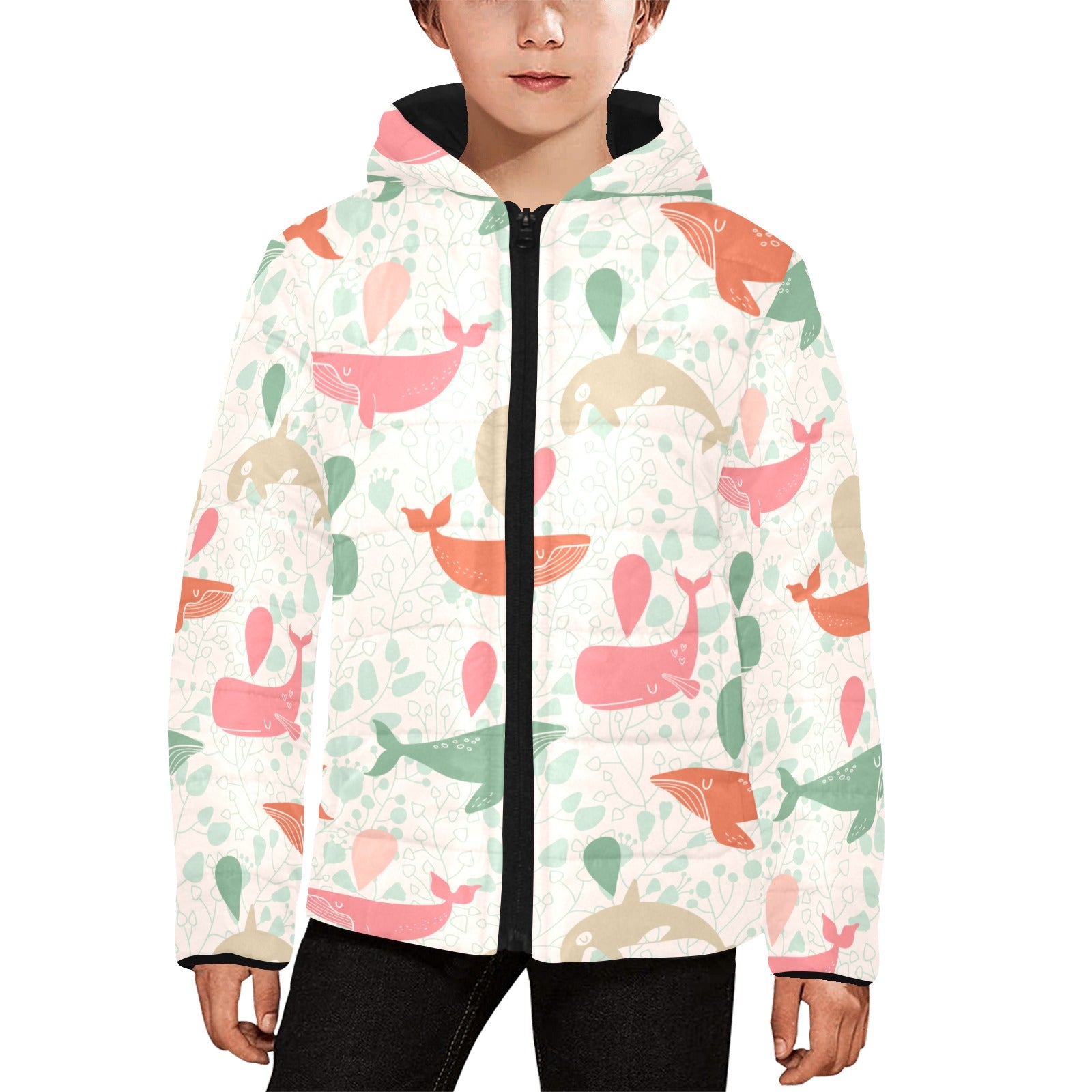 Cute whale pattern Kids' Boys' Girls' Padded Hooded Jacket