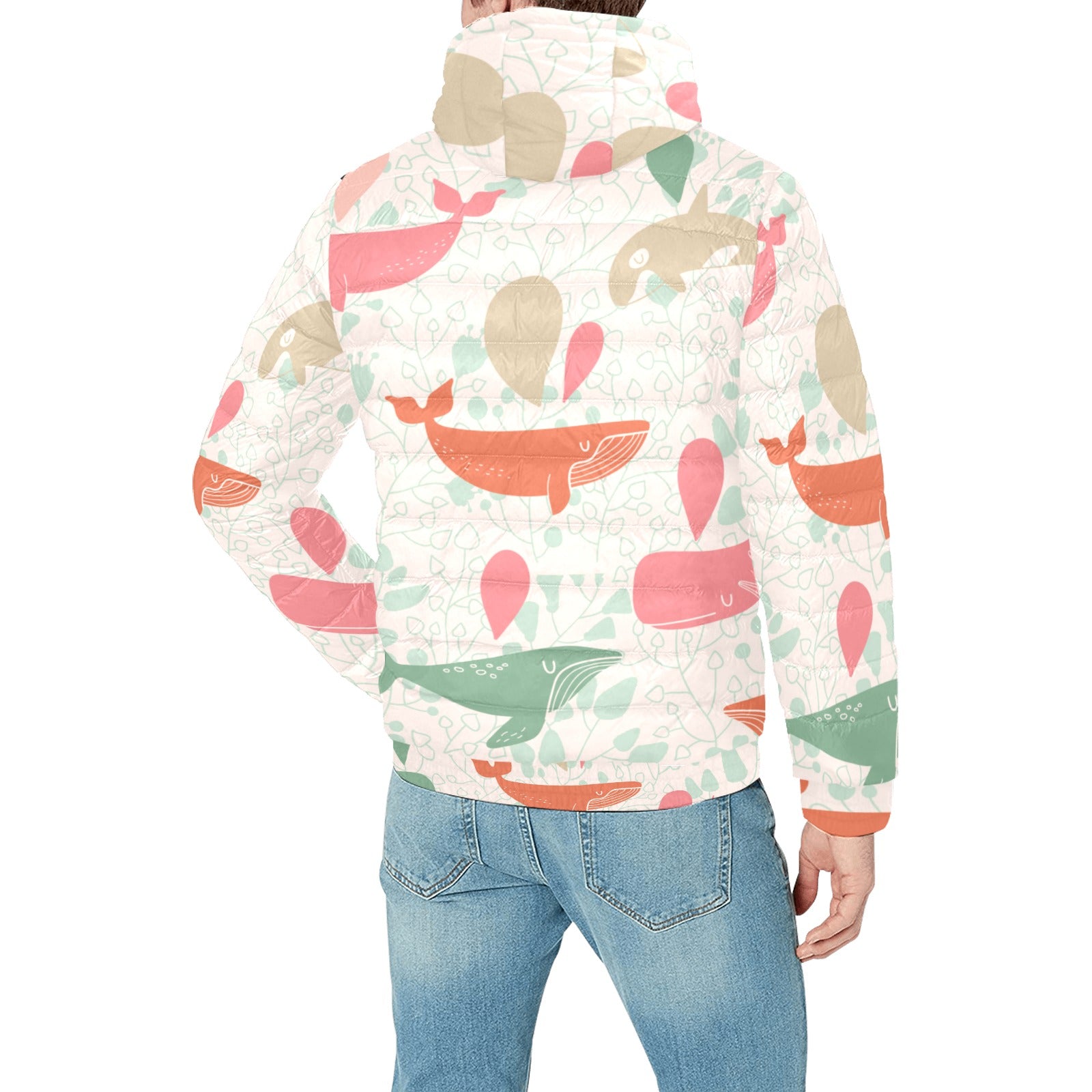 Cute whale pattern Men's Padded Hooded Jacket