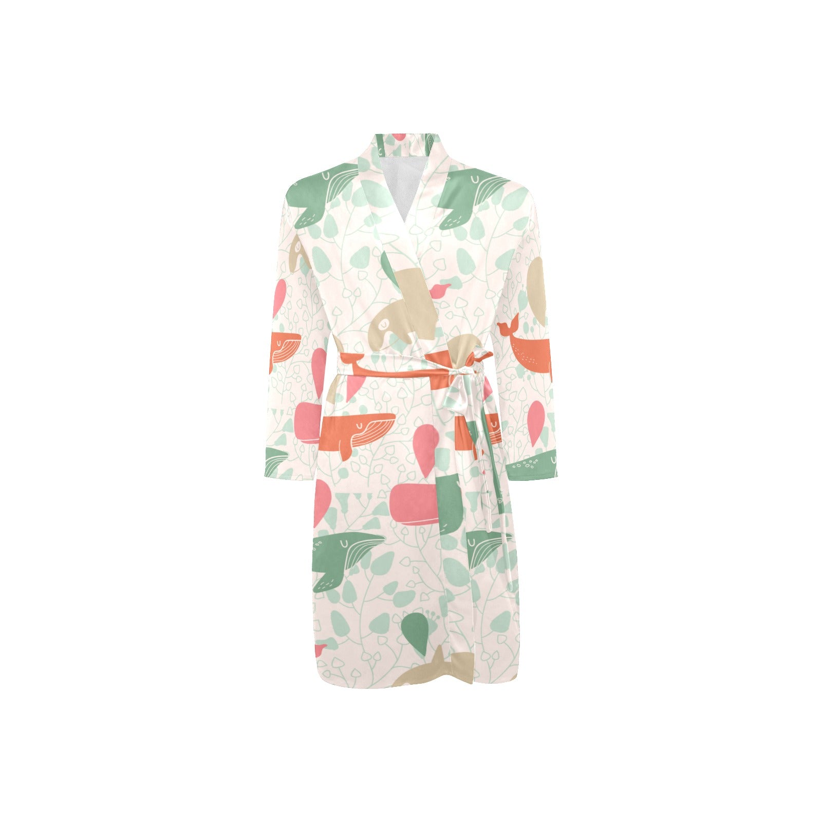 Cute whale pattern Men's Long Sleeve Belted Night Robe