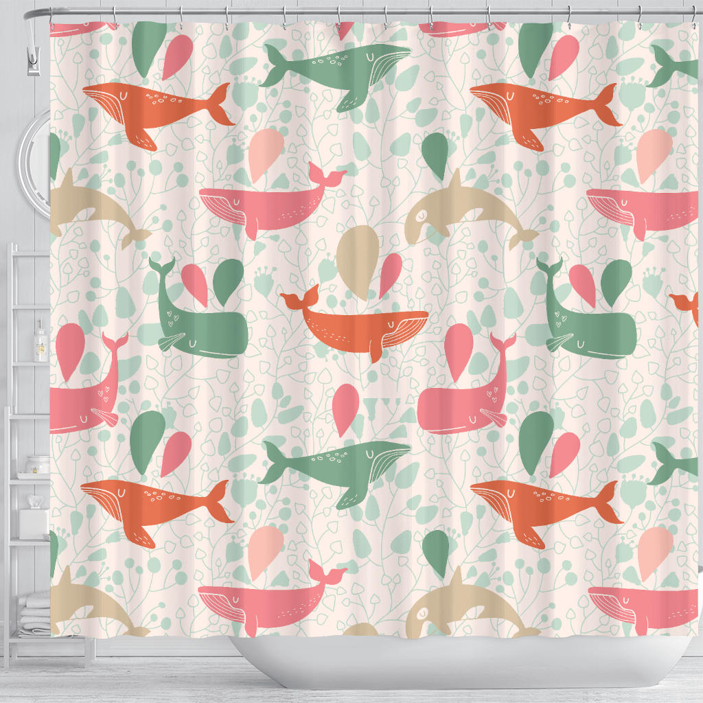 Cute whale pattern Shower Curtain is a uniqued design and limited item. It made to order, hand printed, and sewn with love in our factory.