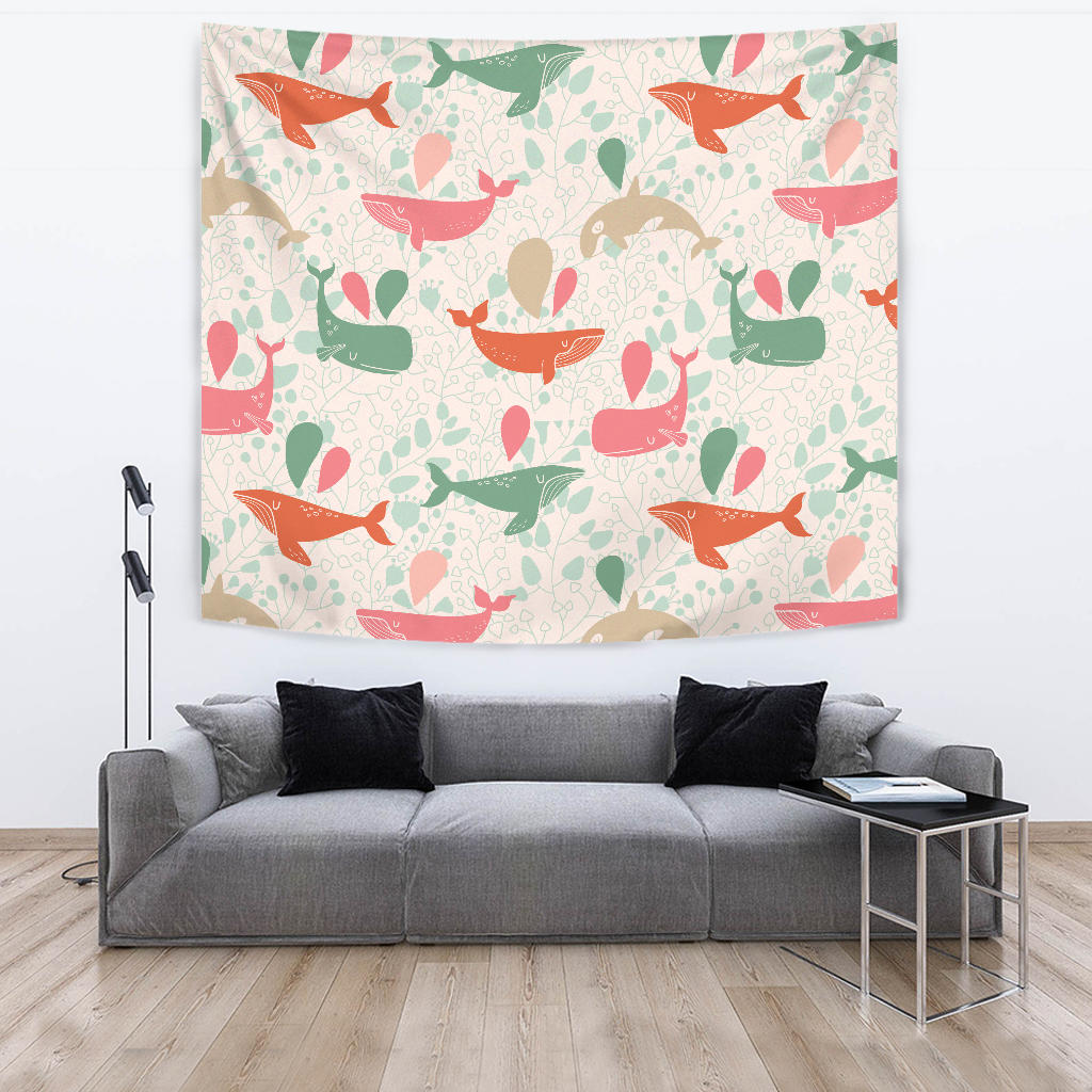 Cute whale pattern Tapestry is a uniqued design and limited item. It made to order, hand printed, and sewn with love in our factory.
