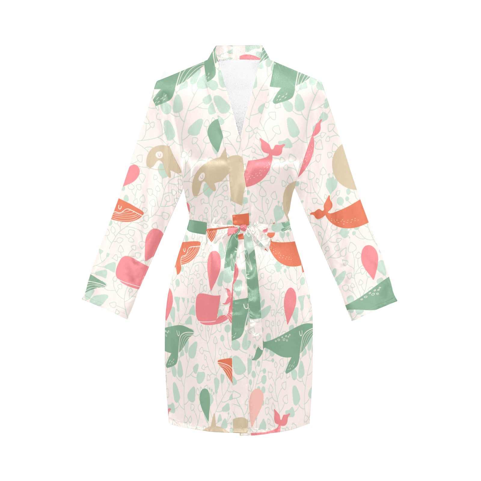 Cute whale pattern Women's Long Sleeve Belted Night Robe
