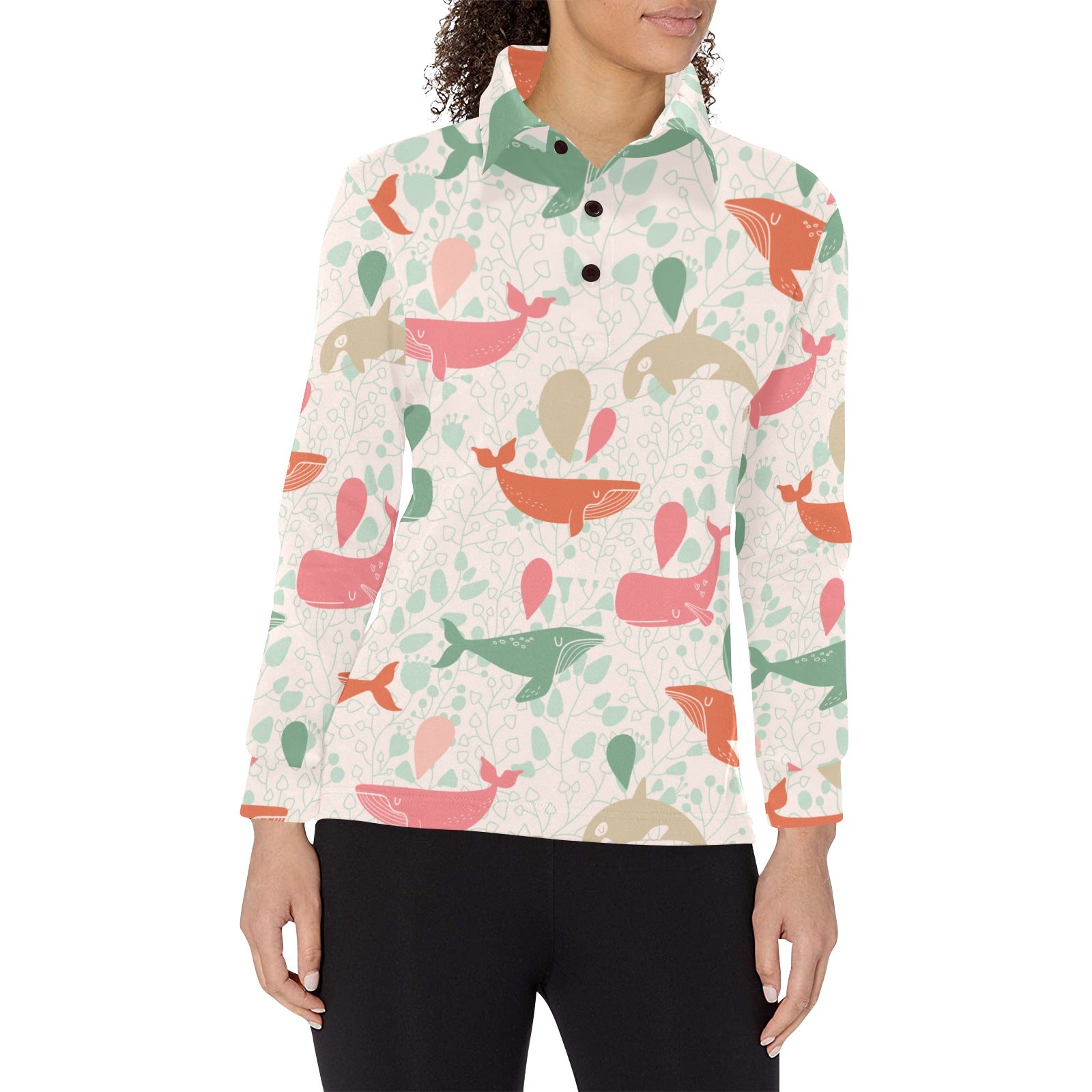 Cute whale pattern Women's Long Sleeve Polo Shirt