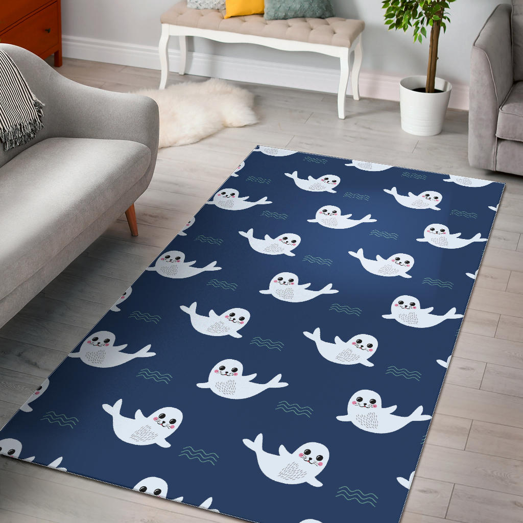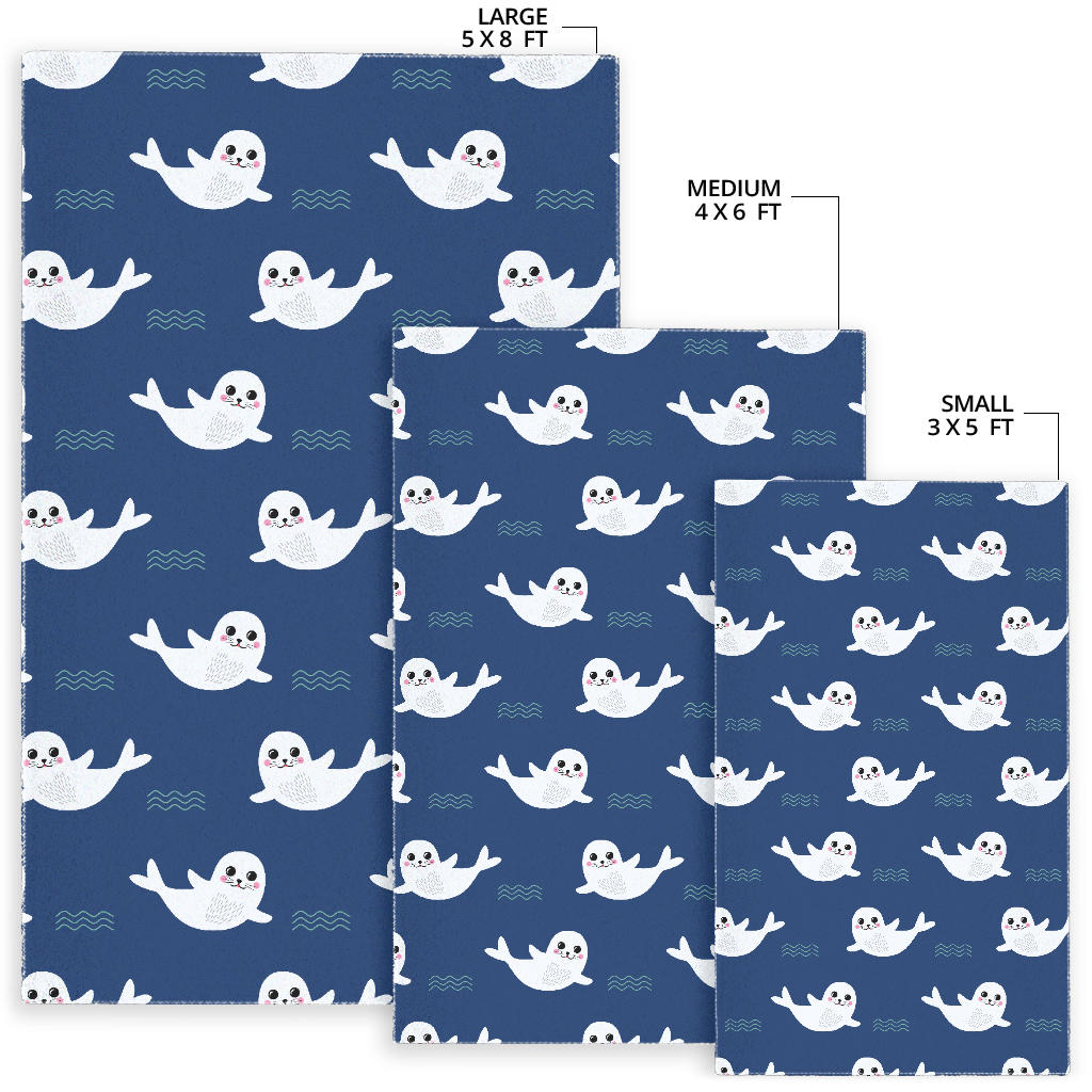 Cute white baby sea lion seal pattern Area Rug is a uniqued design and limited item. It made to order, hand printed, and sewn with love in our factory.