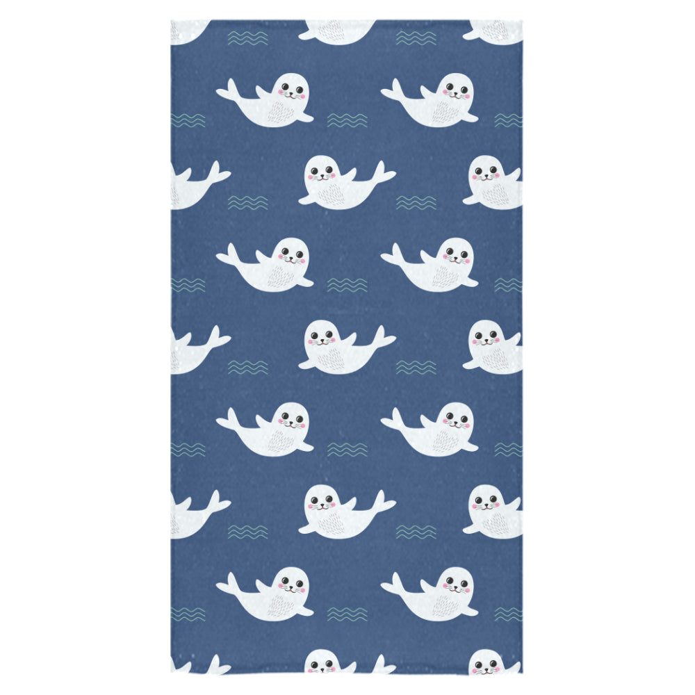 Cute white baby sea lion seal pattern Bath Towel 30"x56" is a uniqued design and limited item. It made to order, hand printed, and sewn with love in our factory.