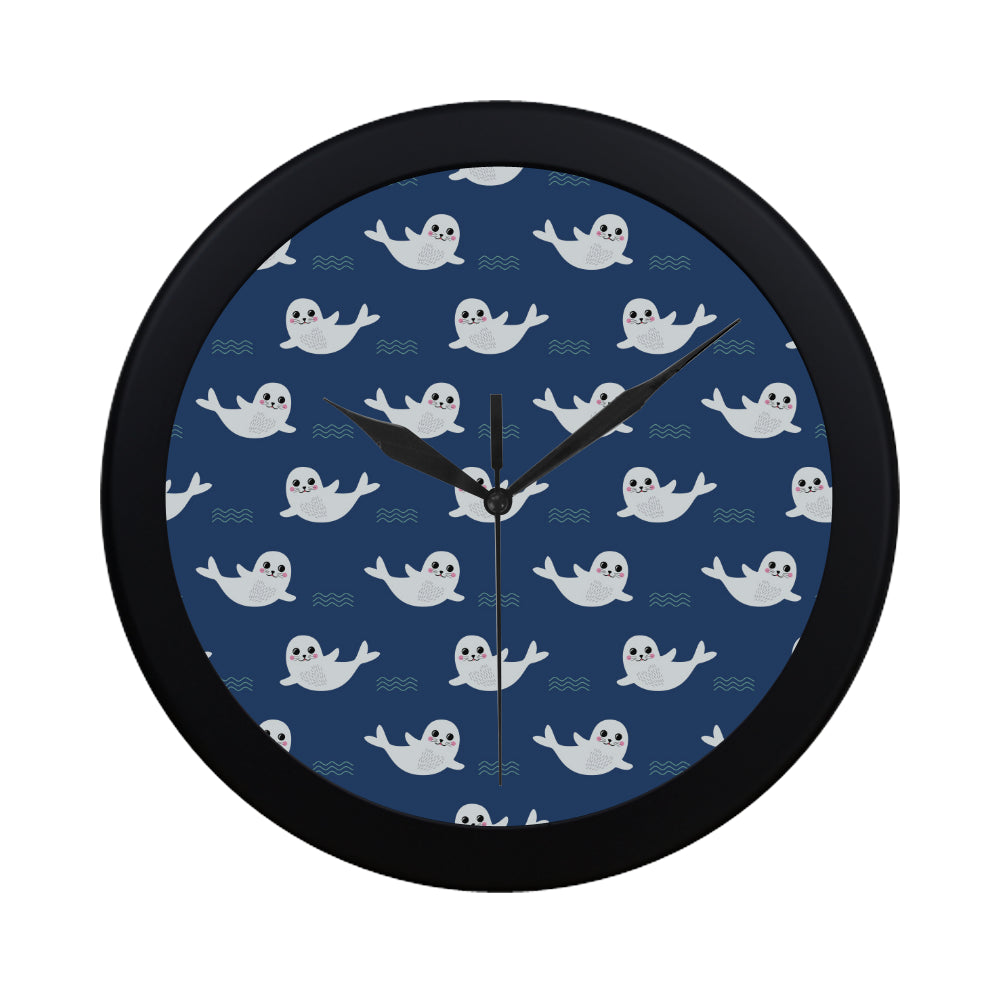 Cute white baby sea lion seal pattern Elegant Black Wall Clock