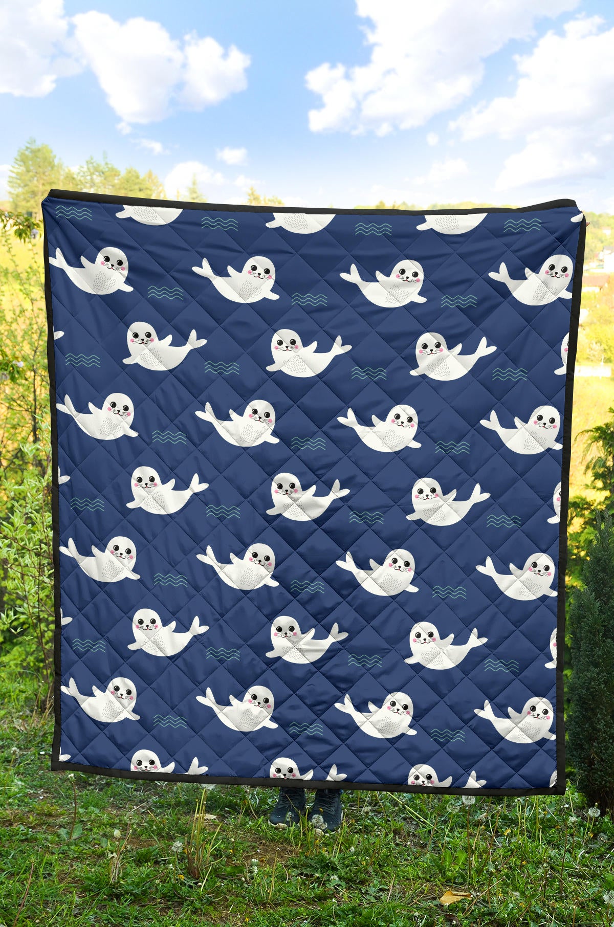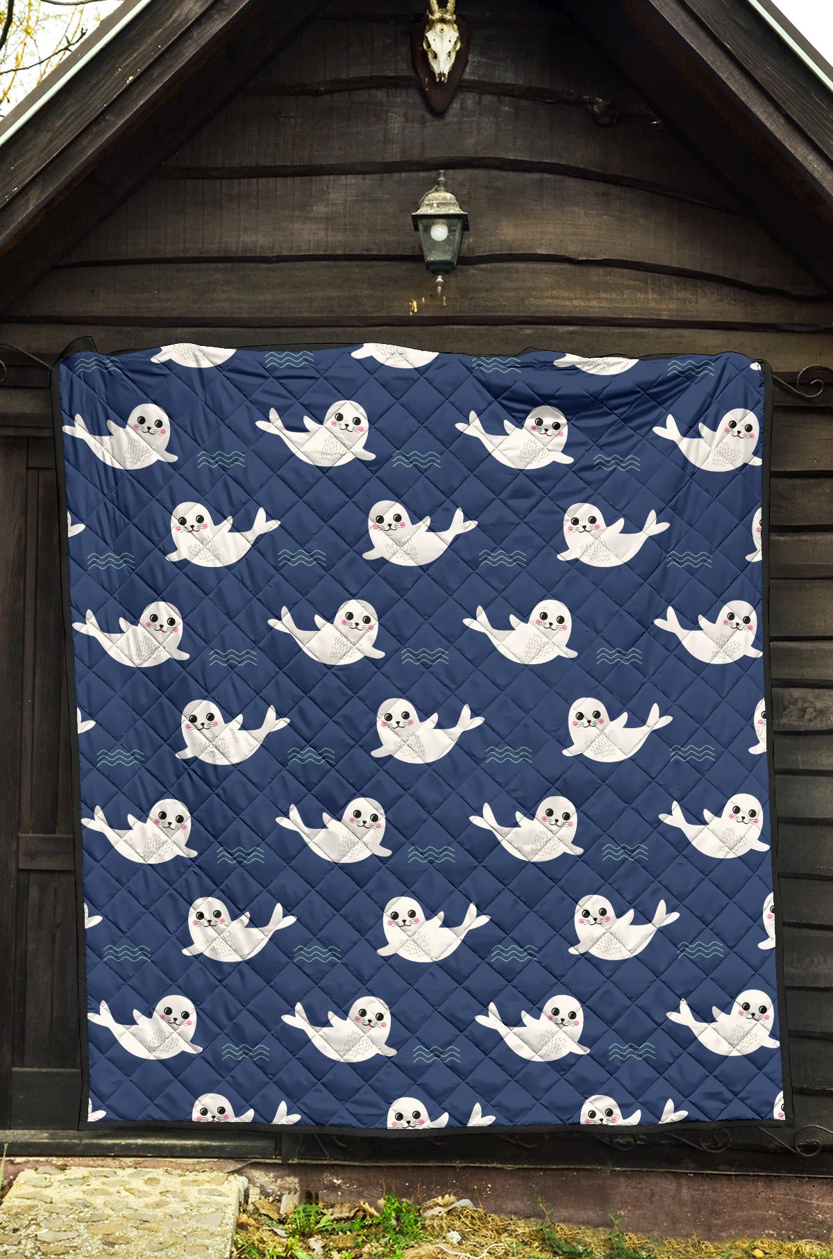Cute White Baby Sea Lion Seal Pattern Premium Quilt is a uniqued design and limited item. It made to order, hand printed, and sewn with love in our factory.