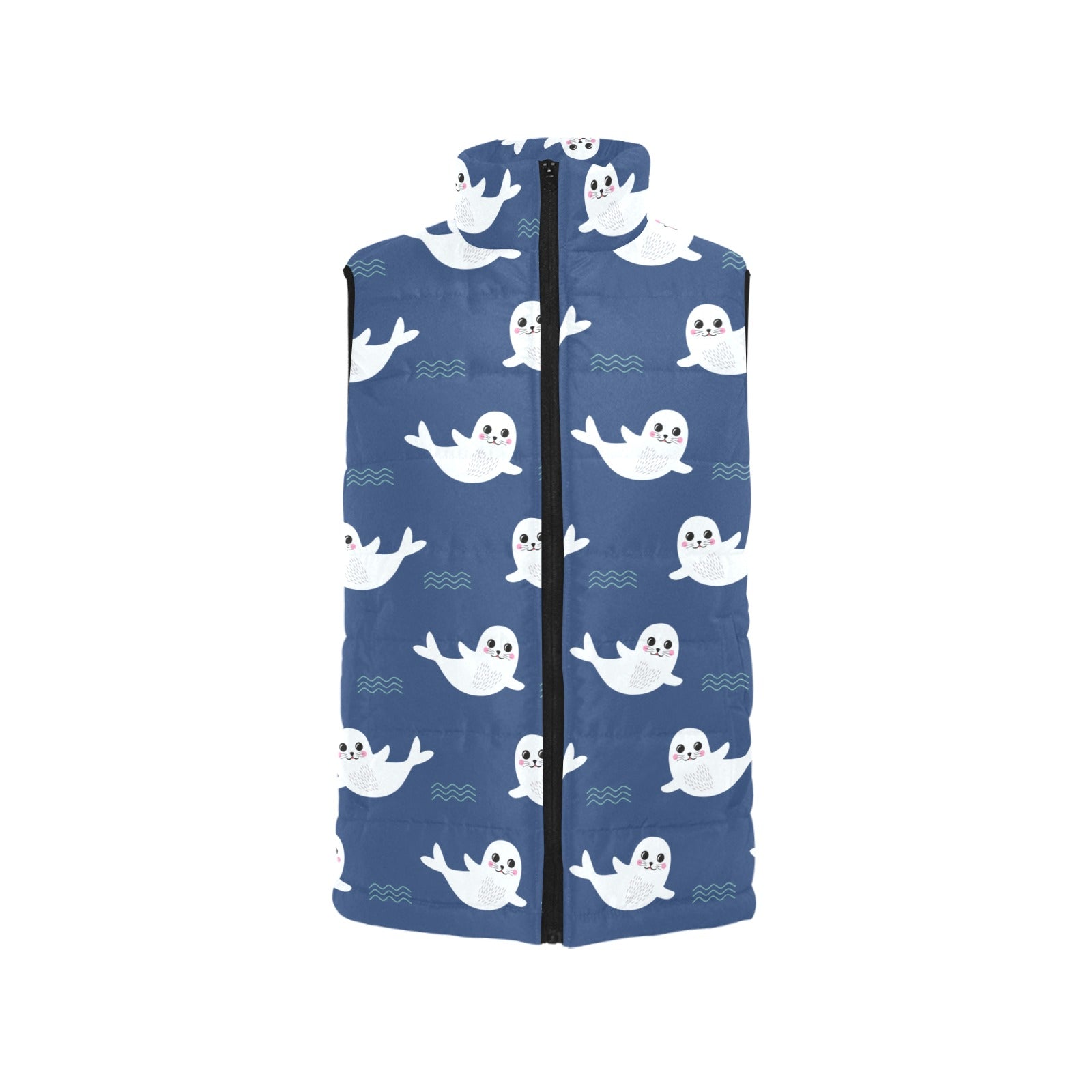 Cute white baby sea lion seal pattern Women's Padded Vest