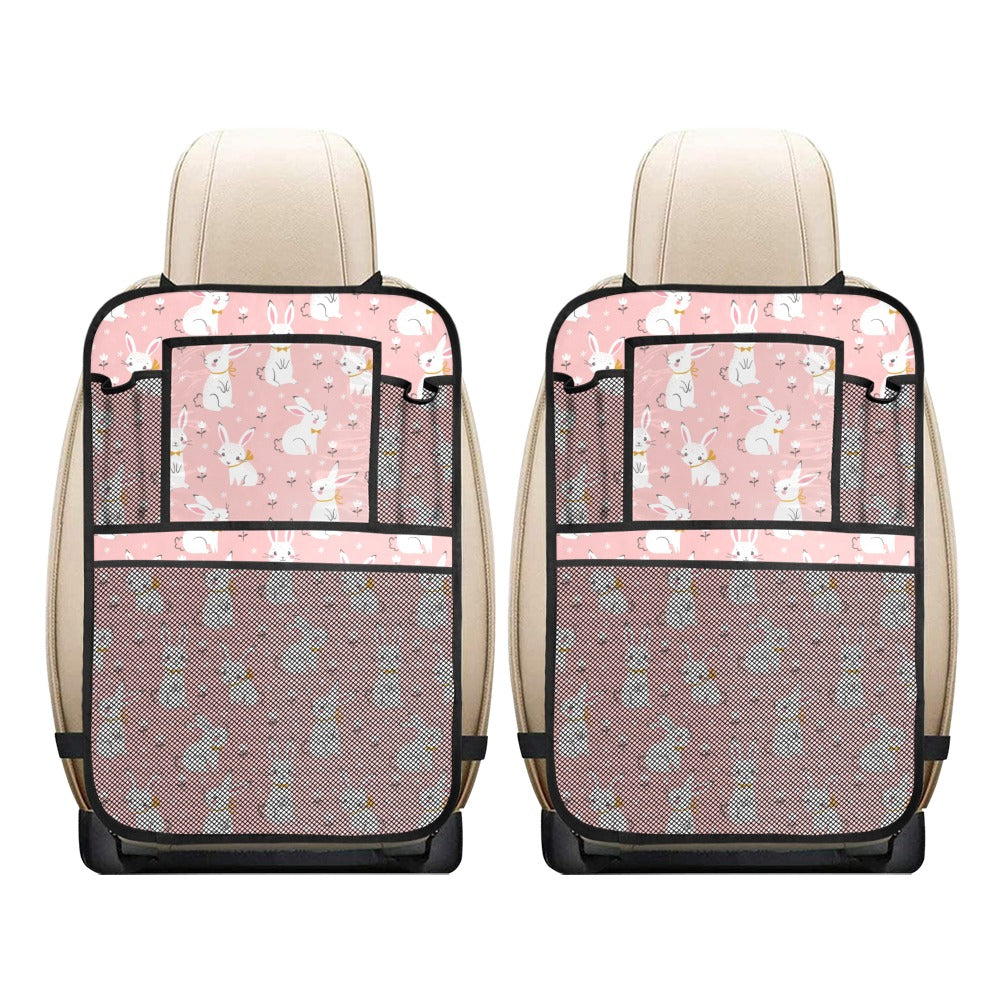 Cute white rabbit flower pink background Car Seat Back Organizer