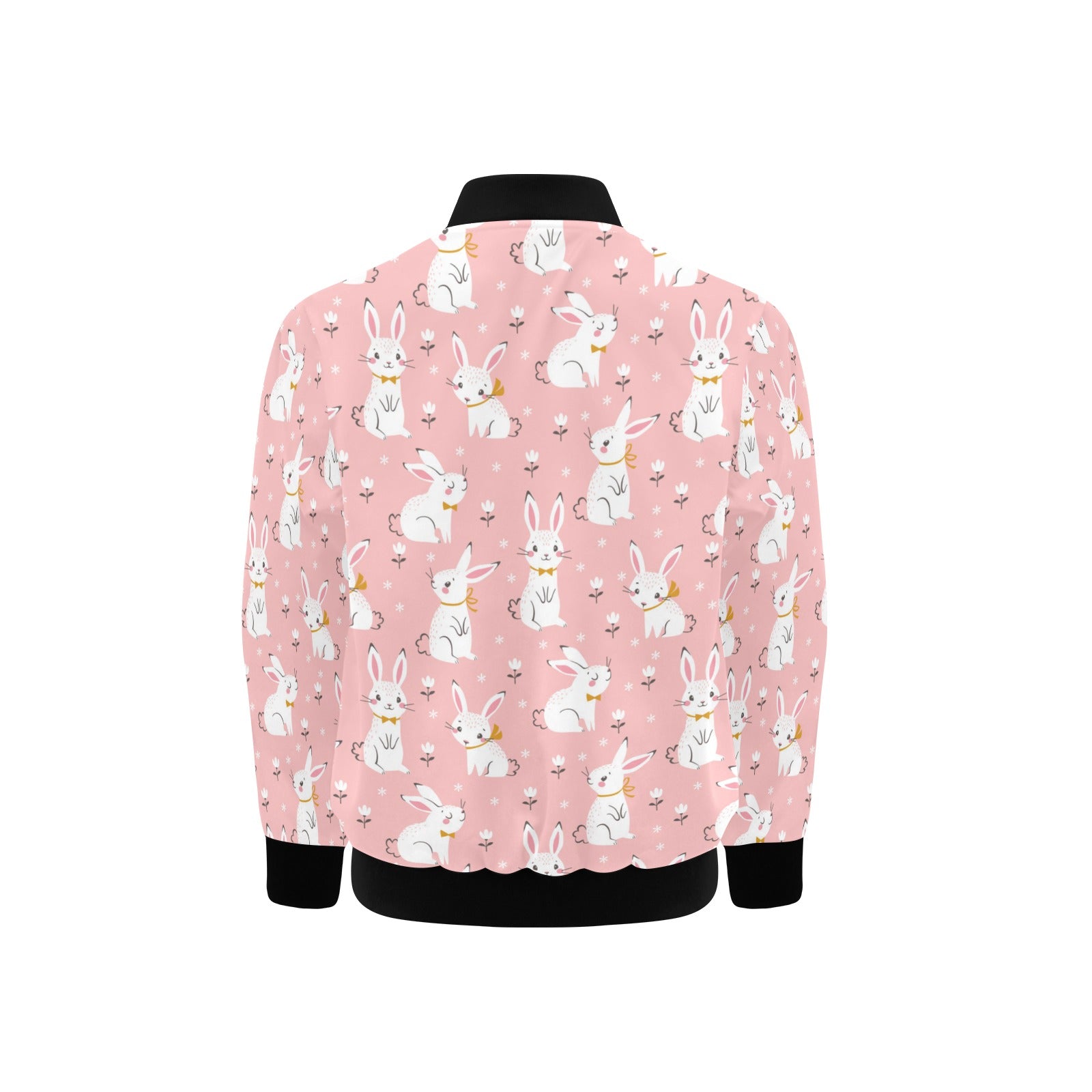 Cute white rabbit flower pink background Kids' Boys' Girls' Bomber Jacket