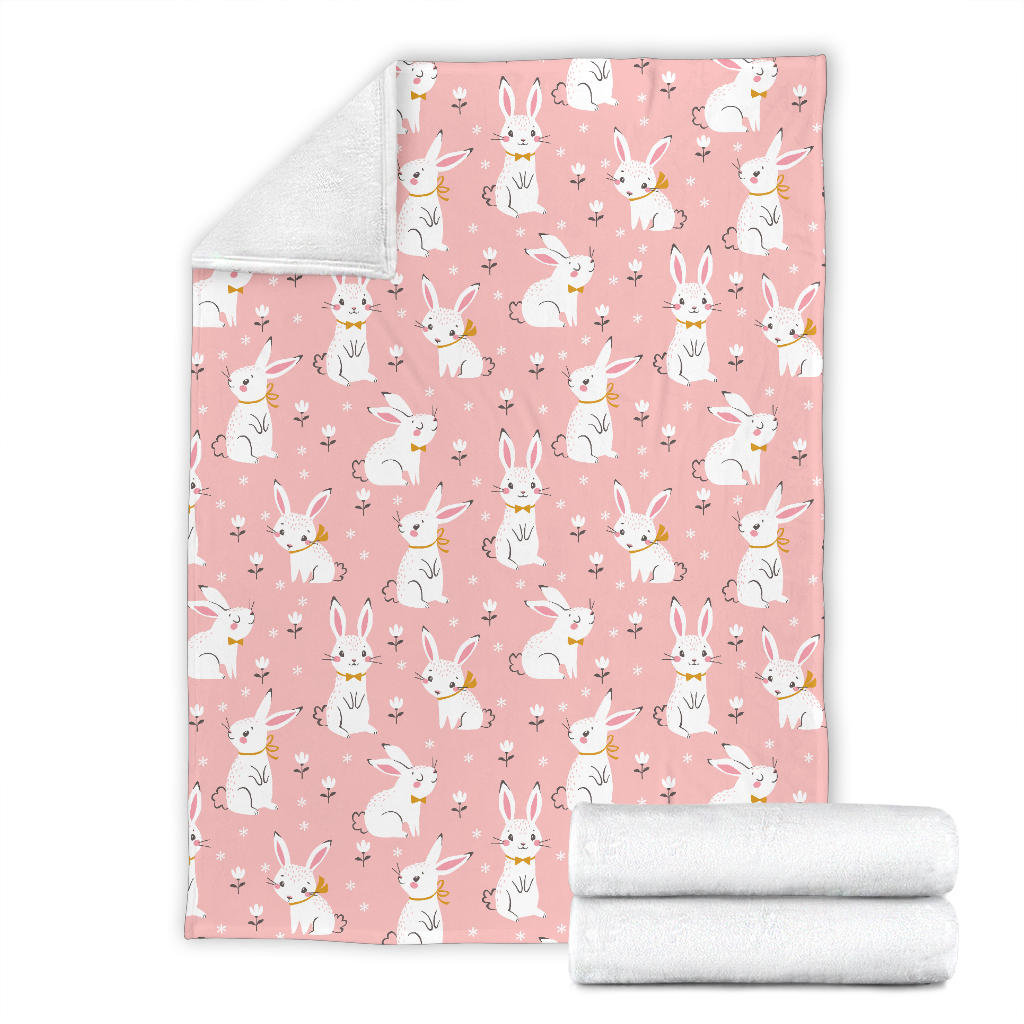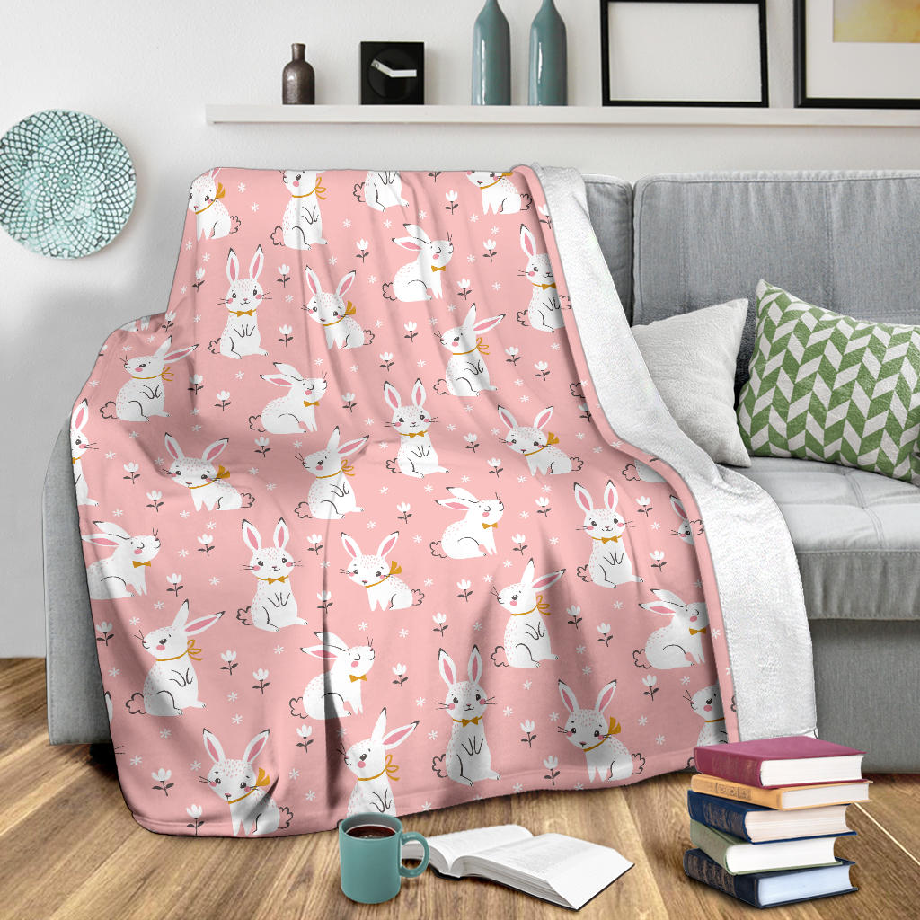 Cute white rabbit flower pink background Premium Blanket is a uniqued design and limited item. It made to order, hand printed, and sewn with love in our factory.