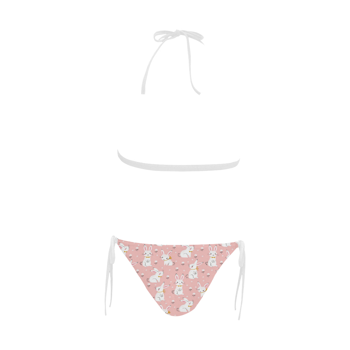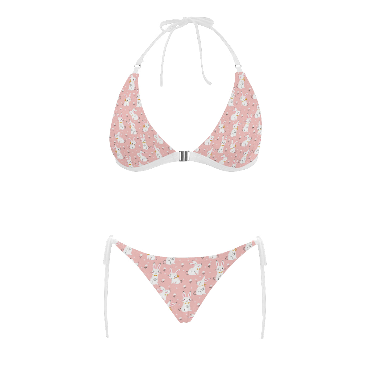 Cute white rabbit flower pink background Sexy Bikinis Two-Piece Swimsuits are uniqued design and limited item. It made to order, hand printed, and sewn with love in our factory.