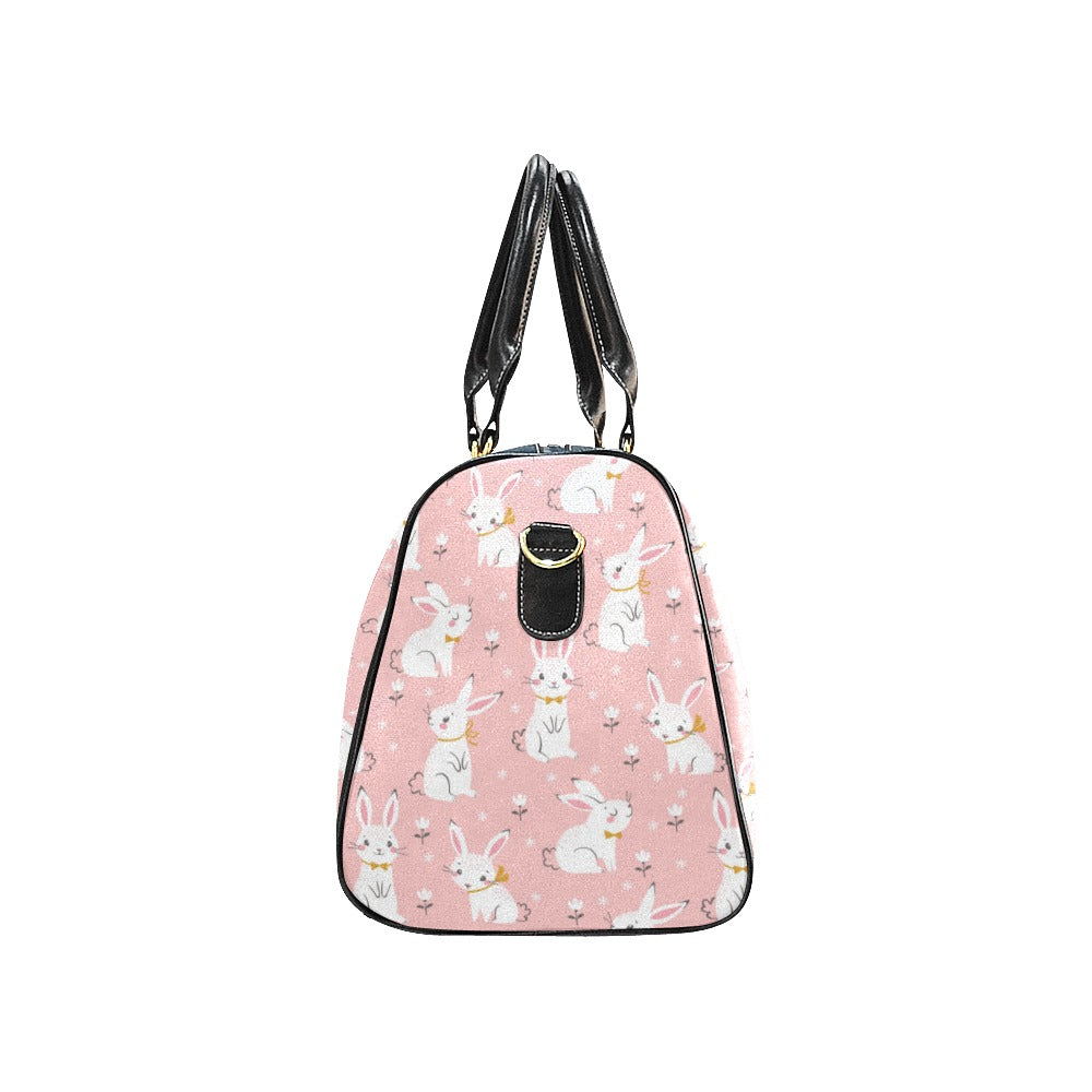 Cute white rabbit flower pink background Travel Bag