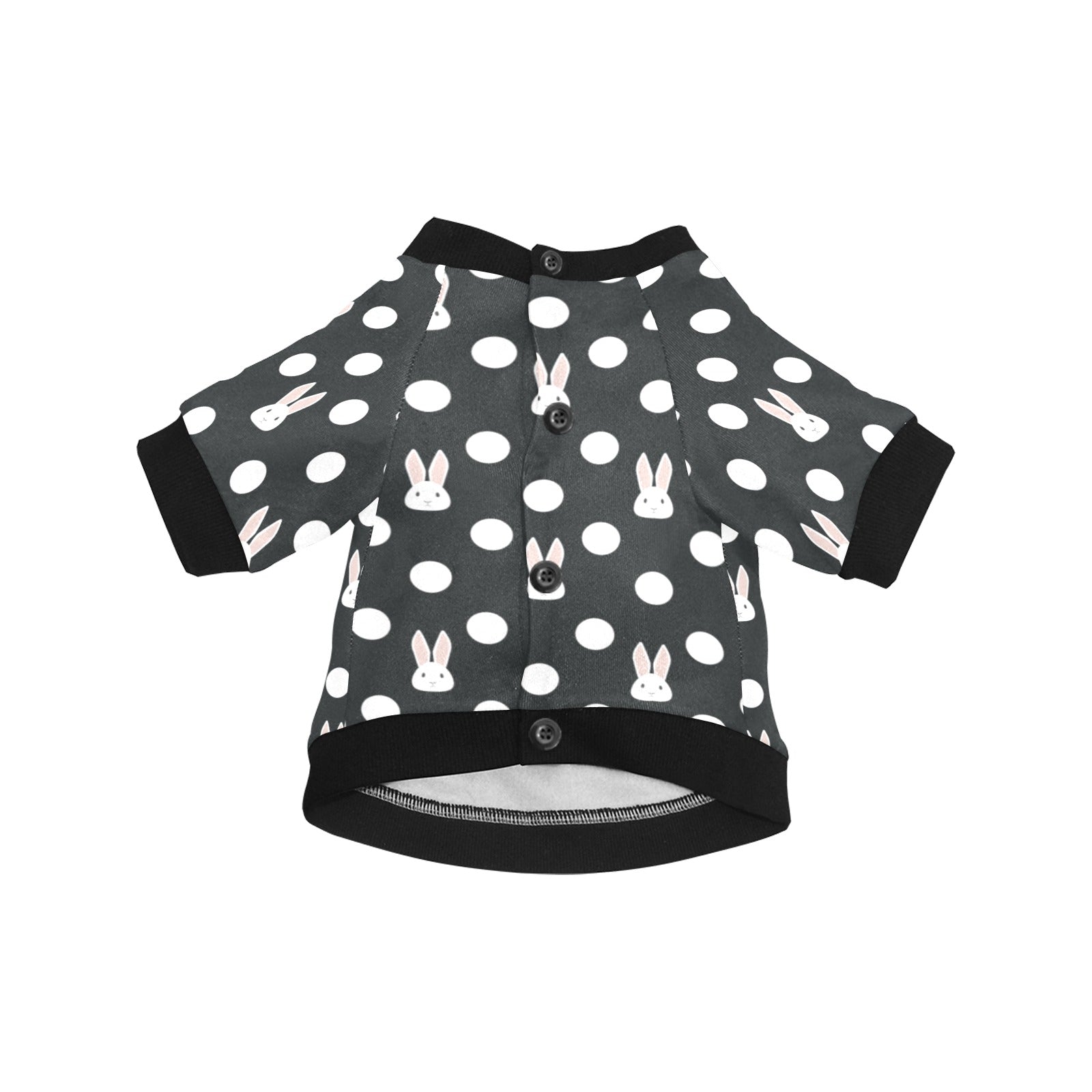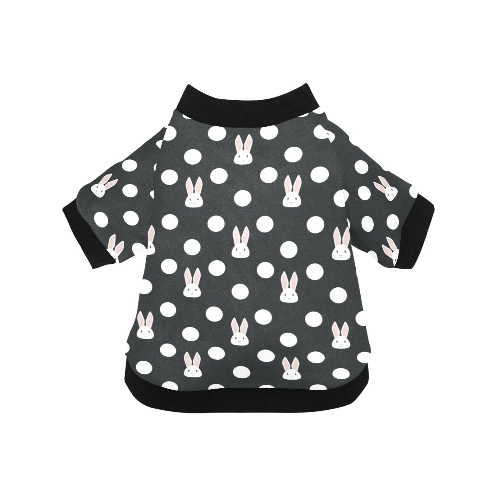 Cute white rabbit polka dots black background All Over Print Pet Dog Round Neck Fuzzy Shirt
