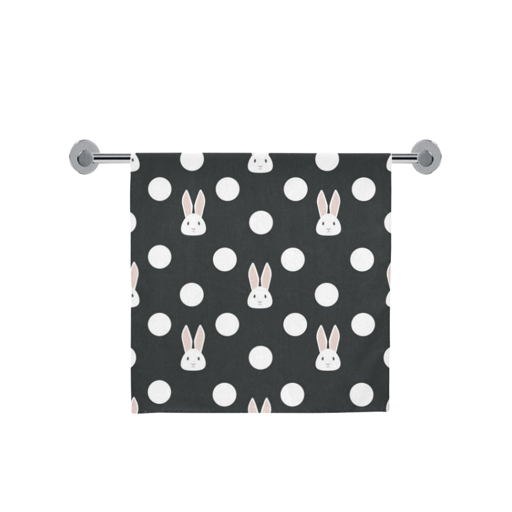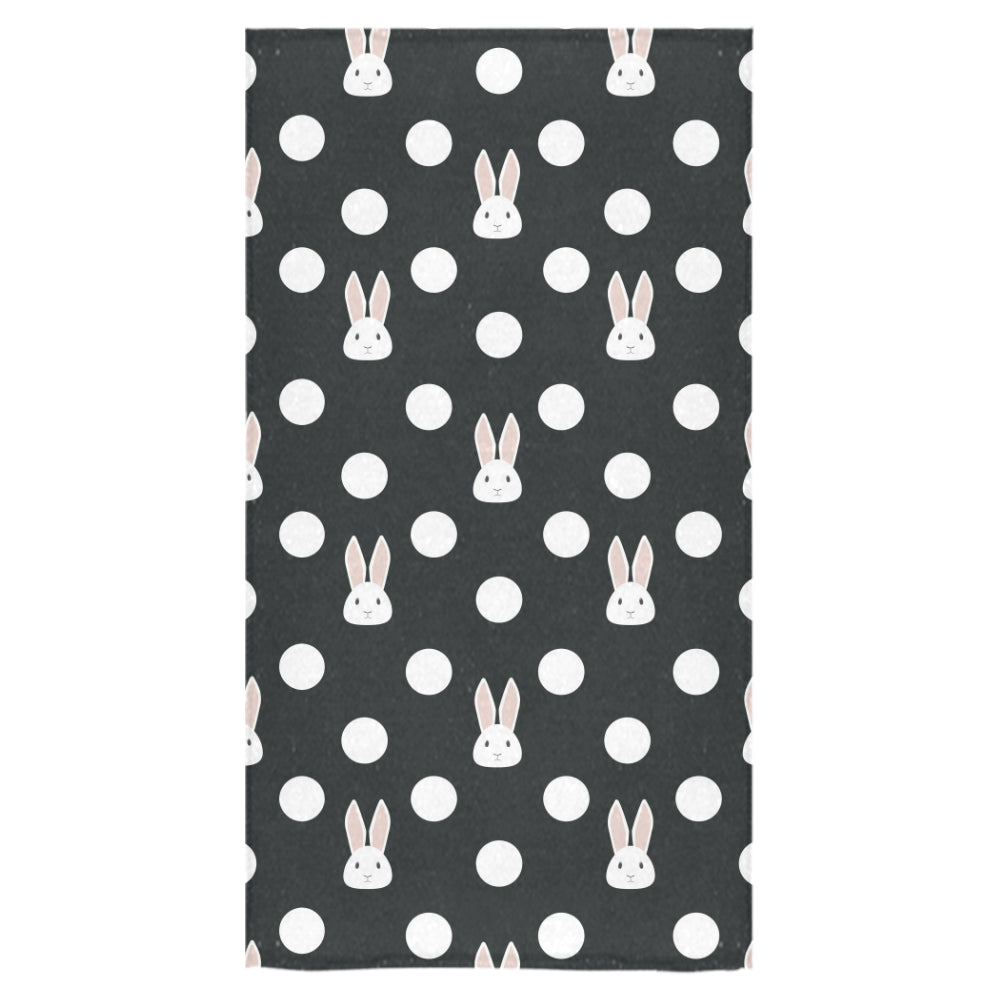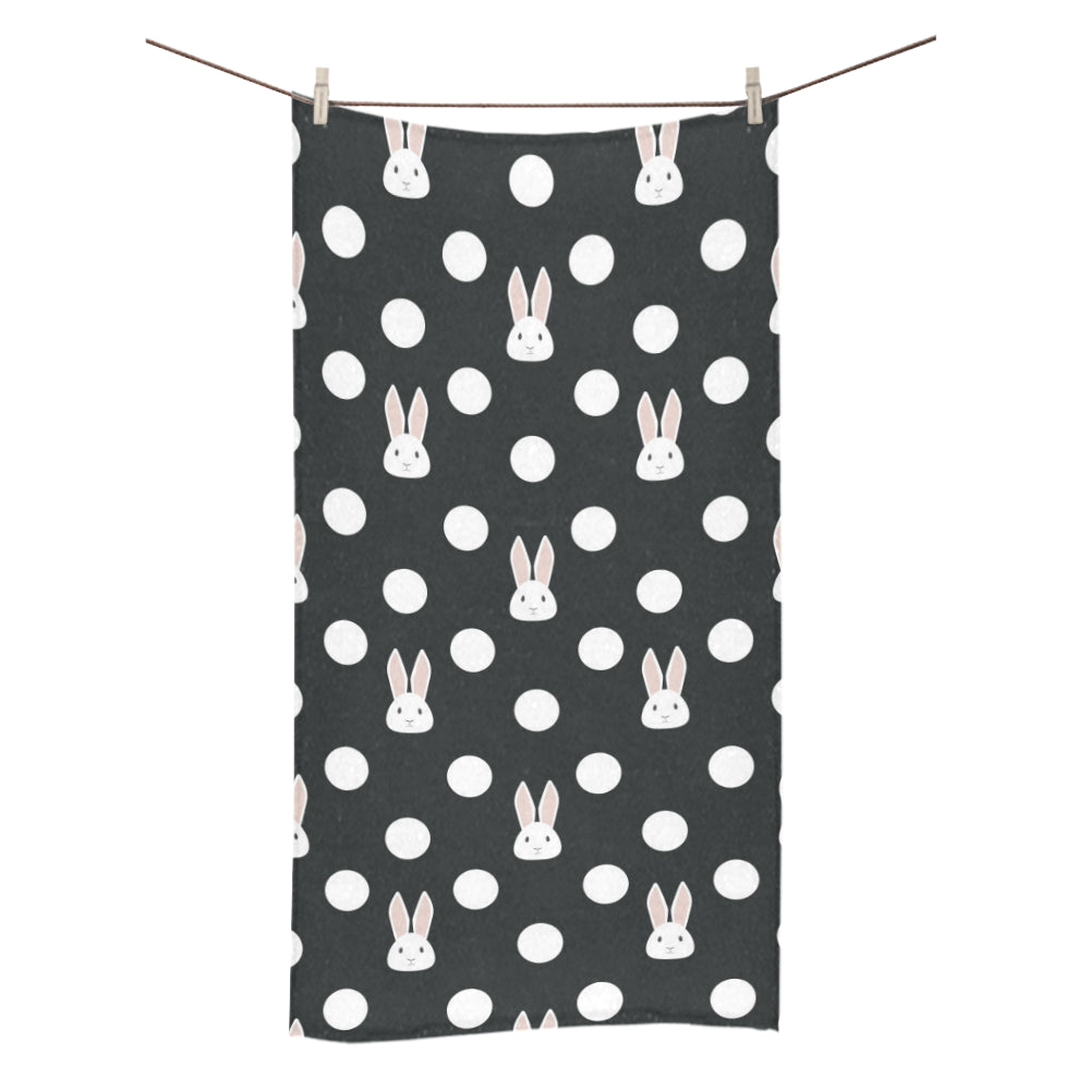 Cute white rabbit polka dots black background Bath Towel 30"x56" is a uniqued design and limited item. It made to order, hand printed, and sewn with love in our factory.