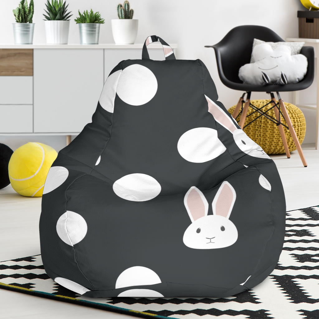 Cute White Rabbit Polka Dots Black Background Bean Bag Cover