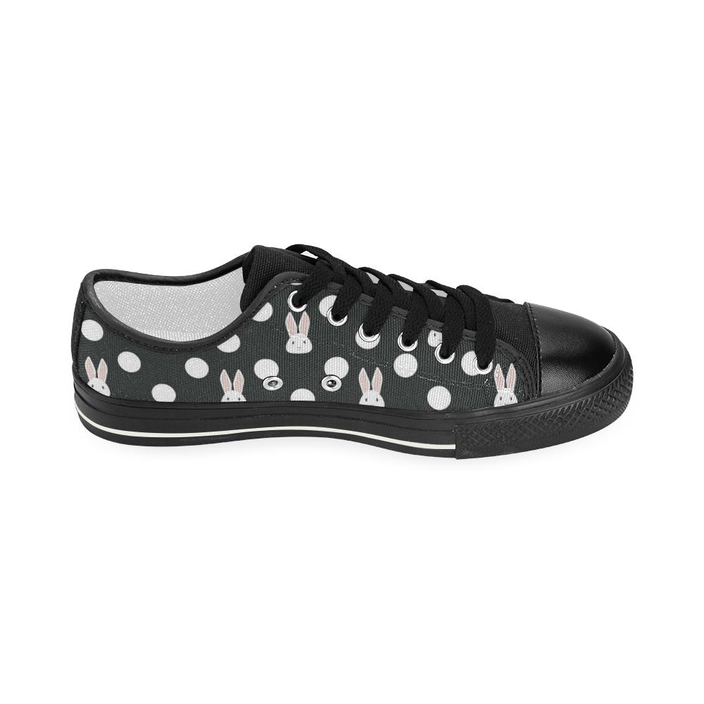 Cute white rabbit polka dots black background Kids' Boys' Girls' Low Top Canvas Shoes Black
