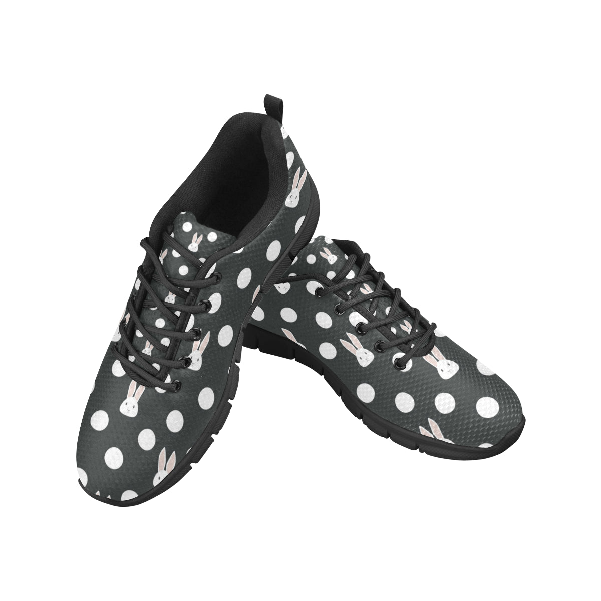 Cute white rabbit polka dots black background Men's Sneaker Shoes