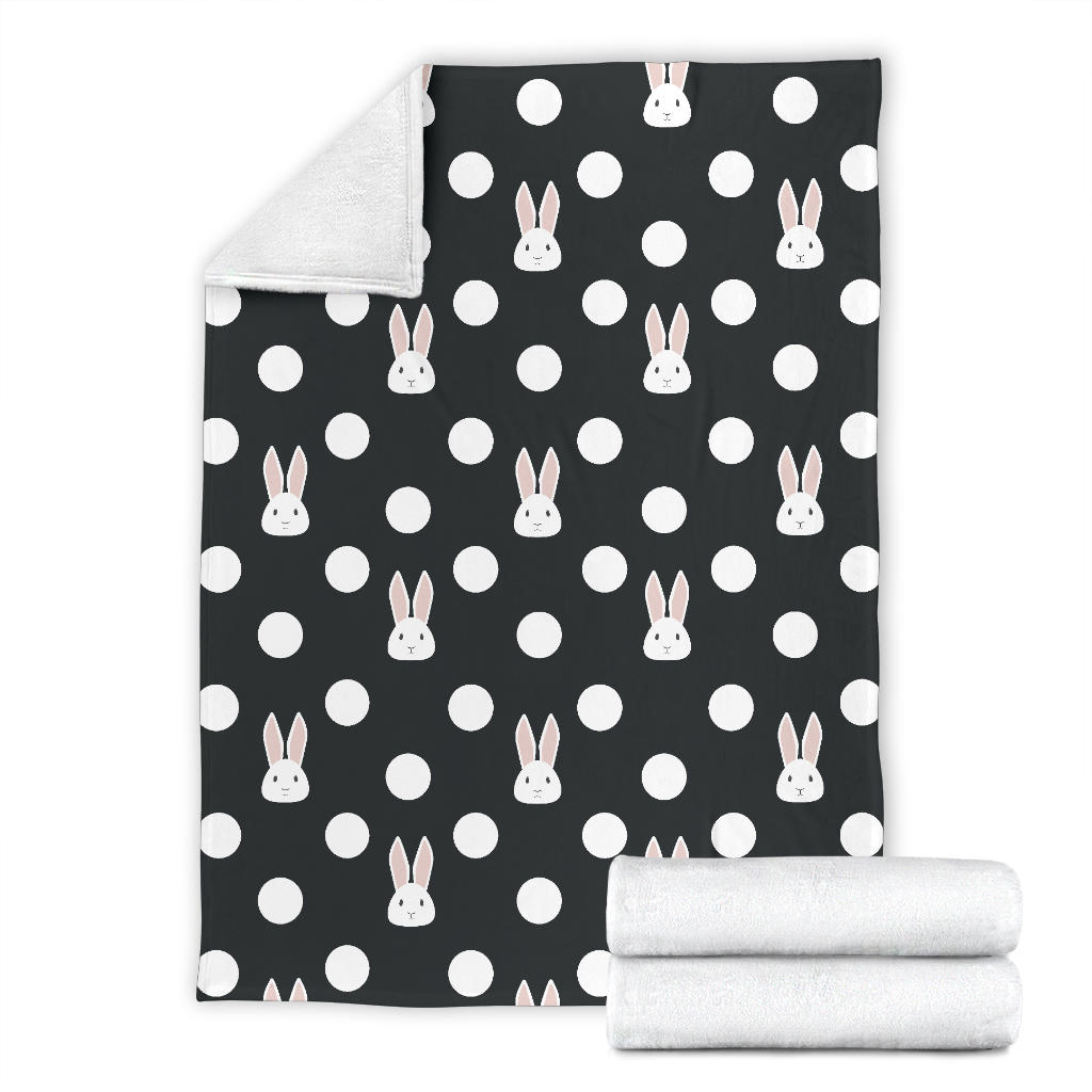 Cute white rabbit polka dots black background Premium Blanket is a uniqued design and limited item. It made to order, hand printed, and sewn with love in our factory.