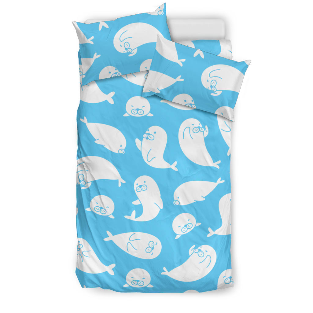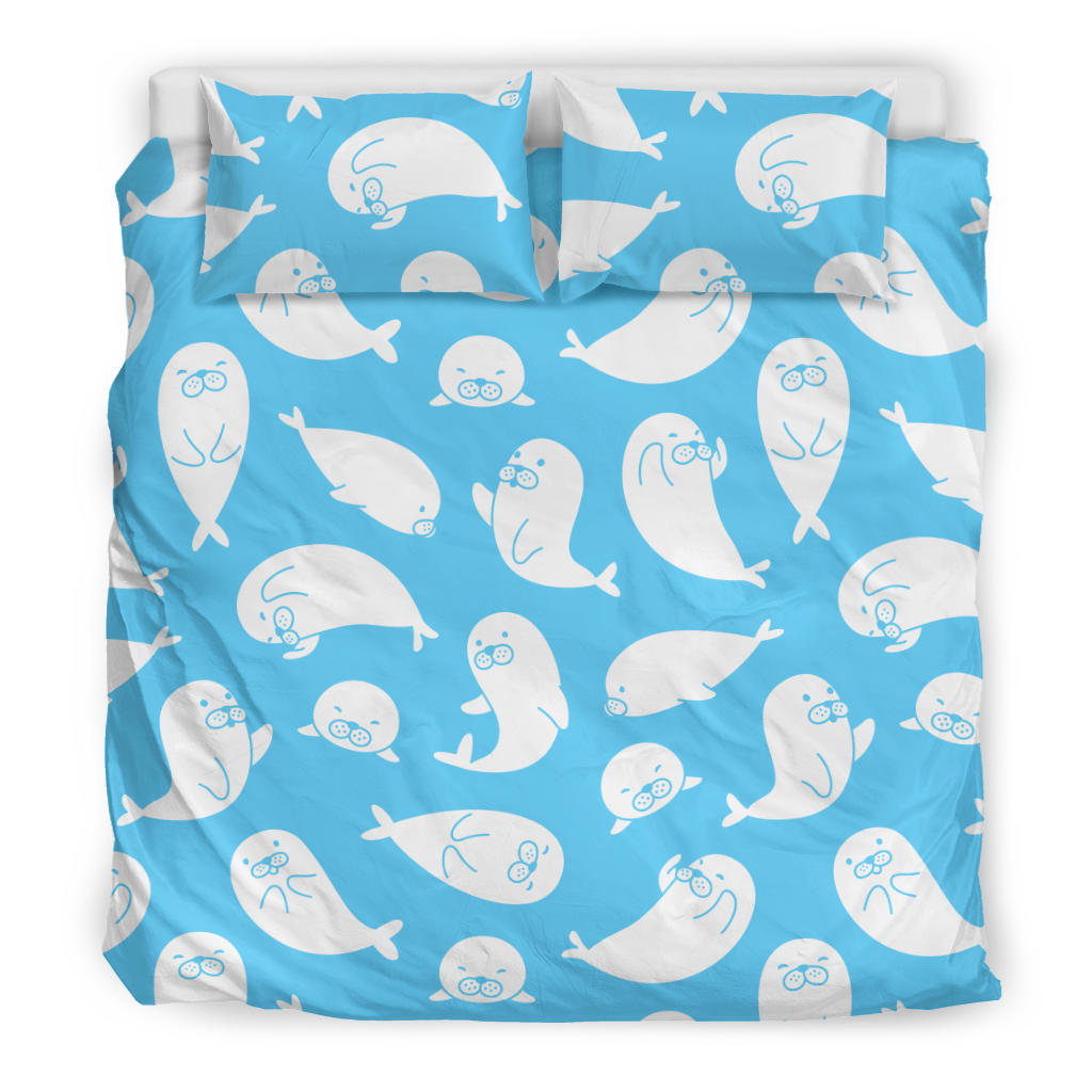 Cute white sea lion seals pattern Bedding Set is a uniqued design and limited item. It made to order, hand printed, and sewn with love in our factory.