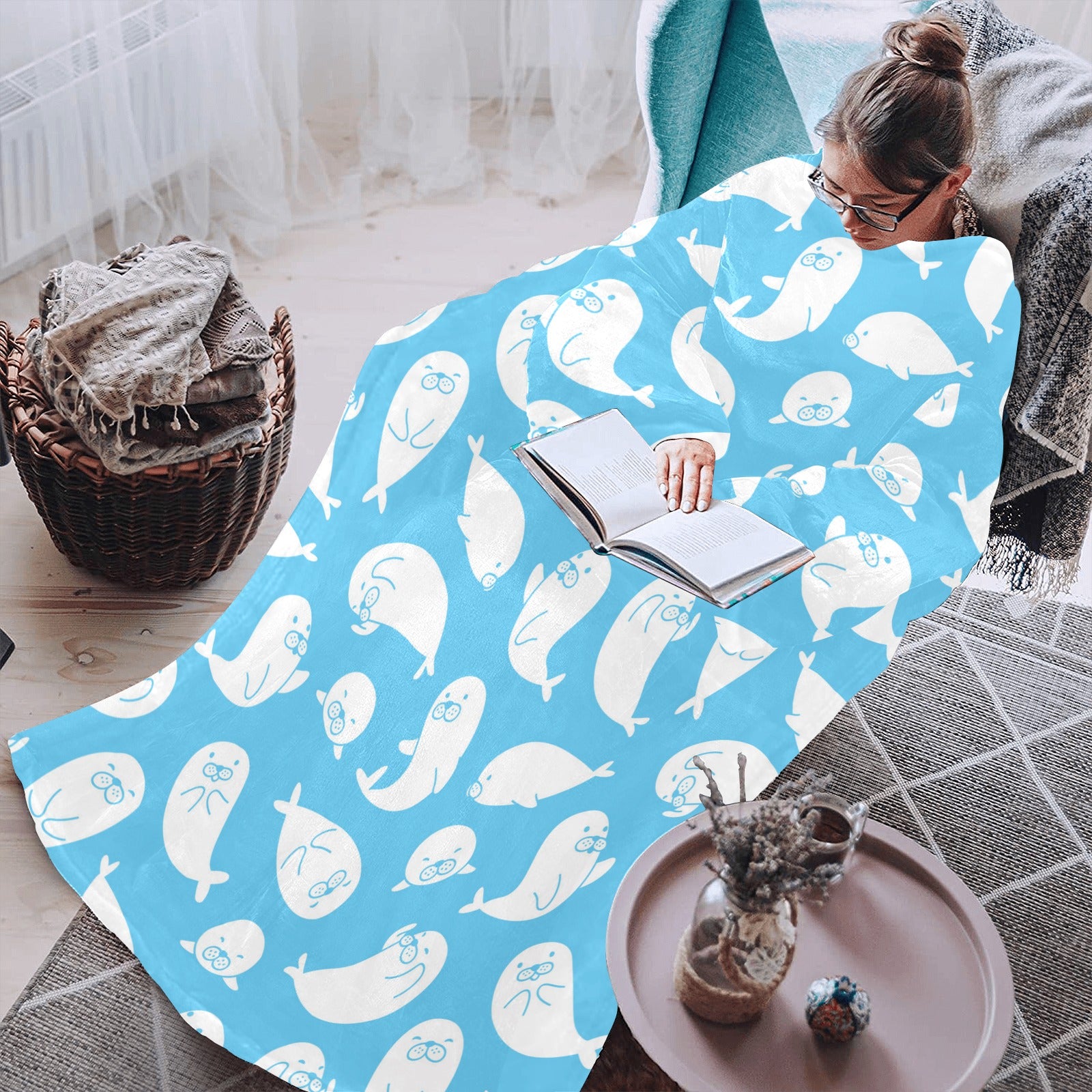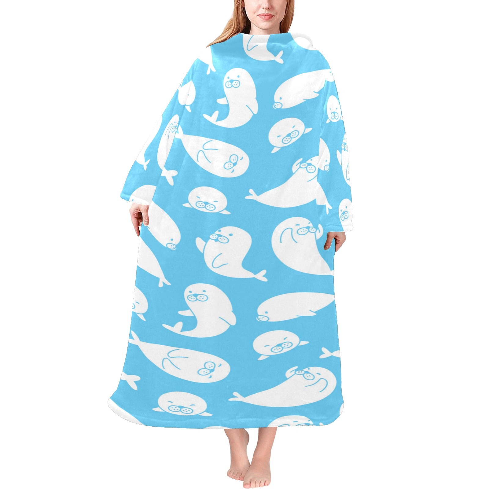 Cute white sea lion seals pattern Blanket Robe with Sleeves