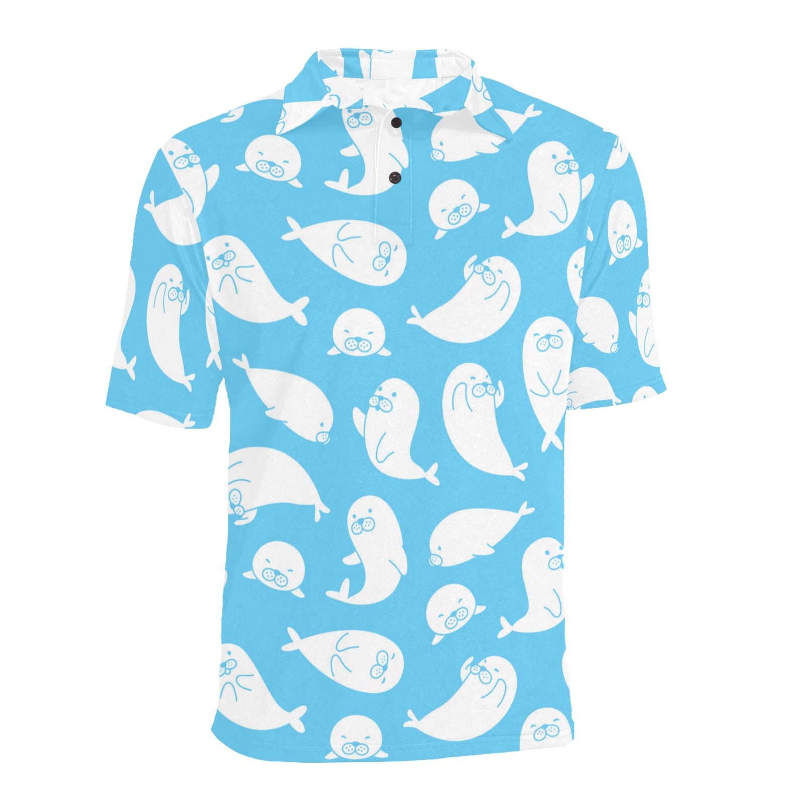 Cute white sea lion seals pattern Men's All Over Print Polo Shirt