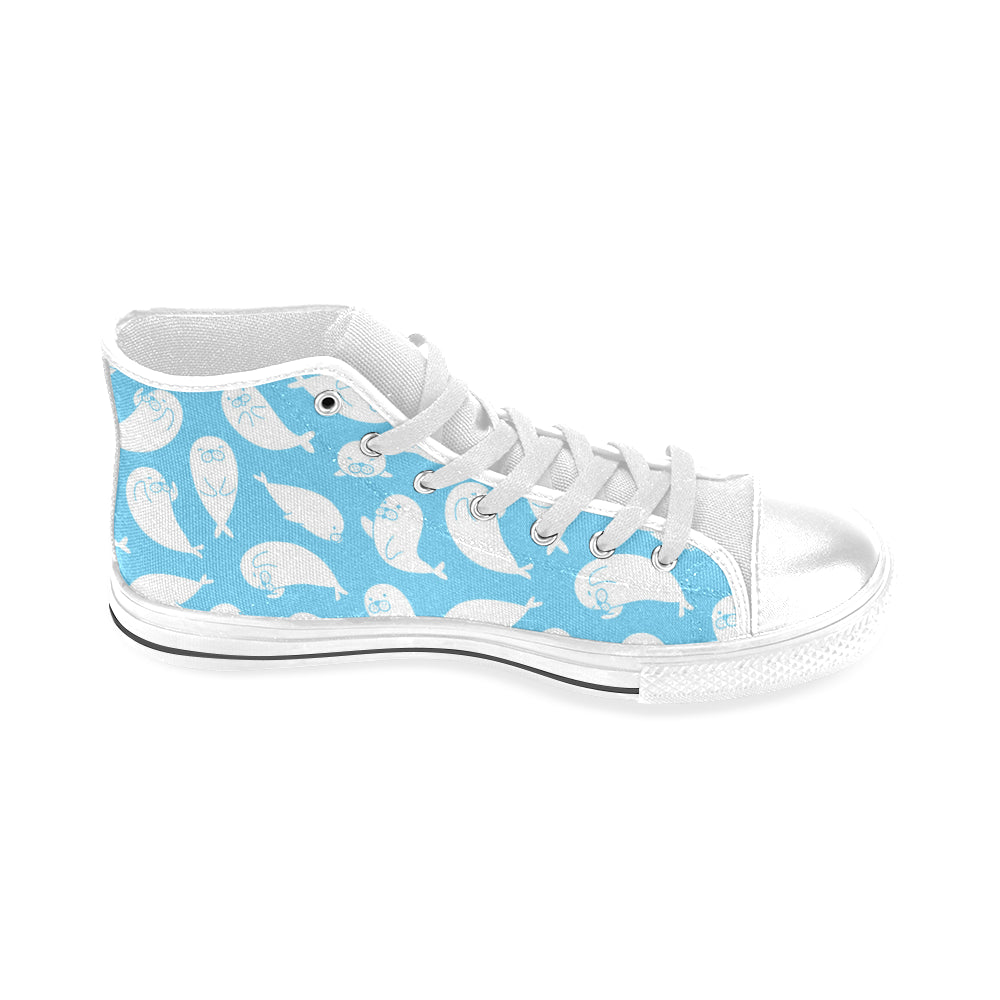 Cute white sea lion seals pattern Men's High Top Canvas Shoes White