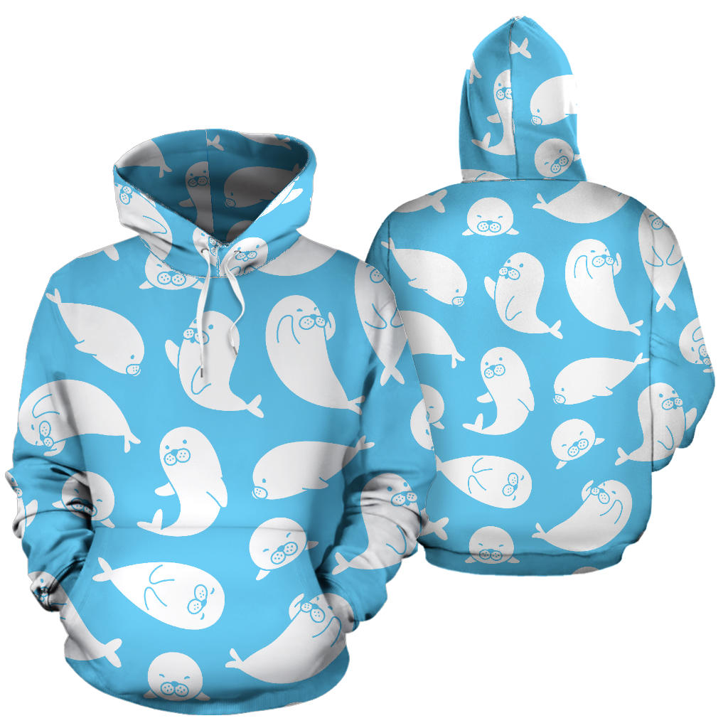 Cute White Sea Lion Seals Pattern Men Women Pullover Hoodie