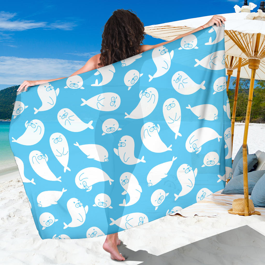 Cute white sea lion seals pattern Sarong is a uniqued design and limited item. It made to order, hand printed, and sewn with love in our factory.