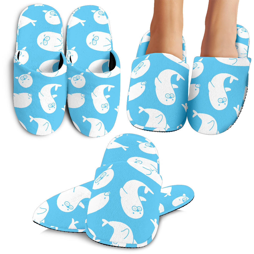 Cute white sea lion seals pattern Slippers are uniqued design and limited item. It made to order, hand printed, and sewn with love in our factory.
