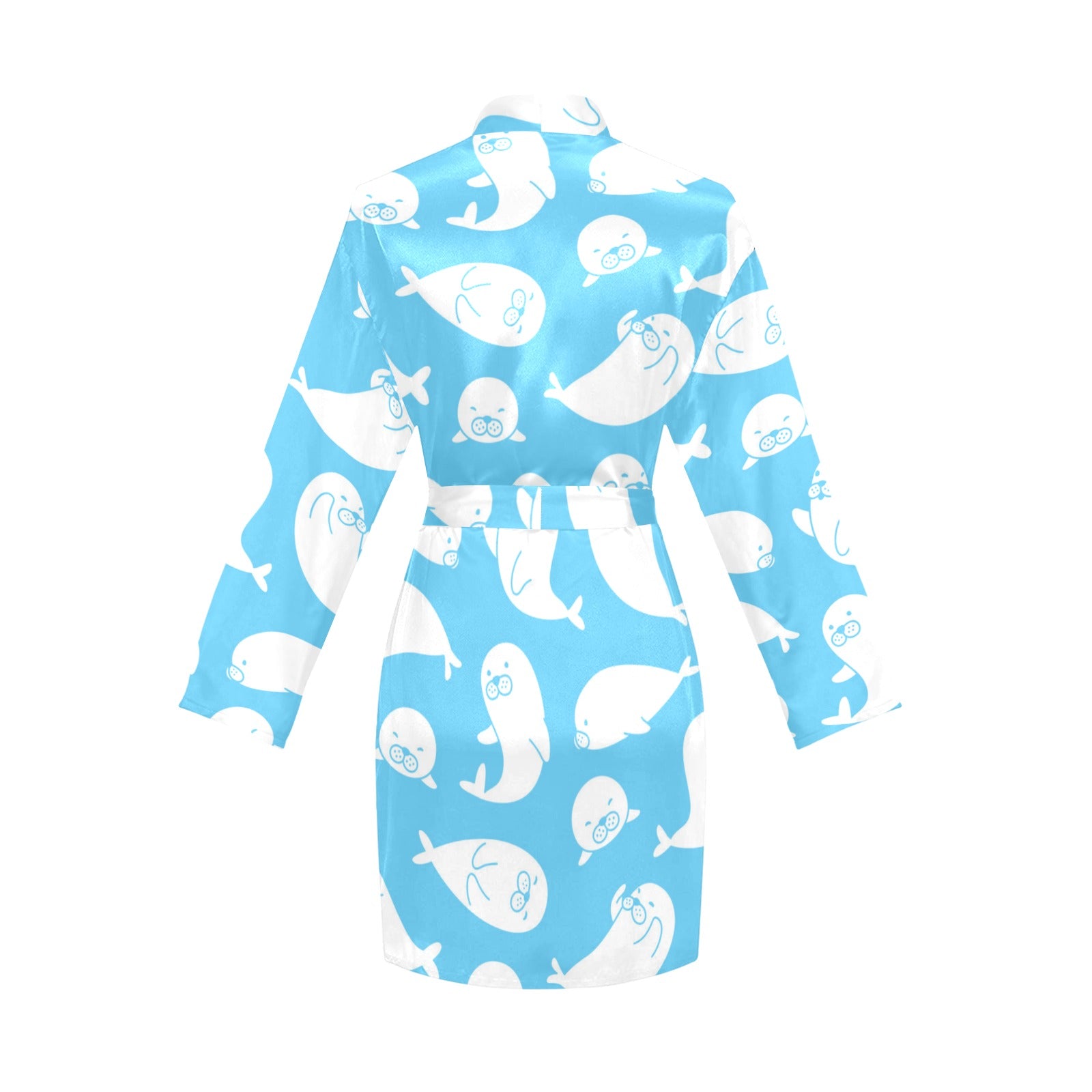 Cute white sea lion seals pattern Women's Long Sleeve Belted Night Robe