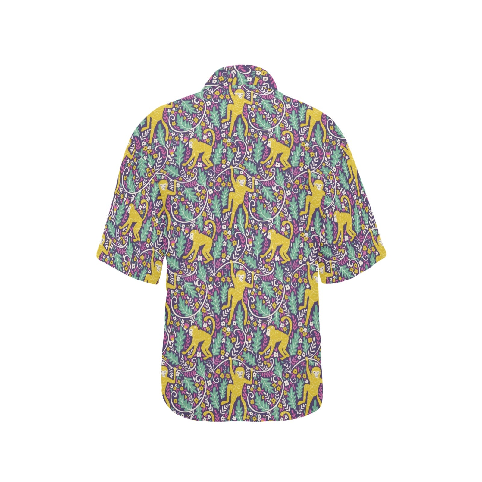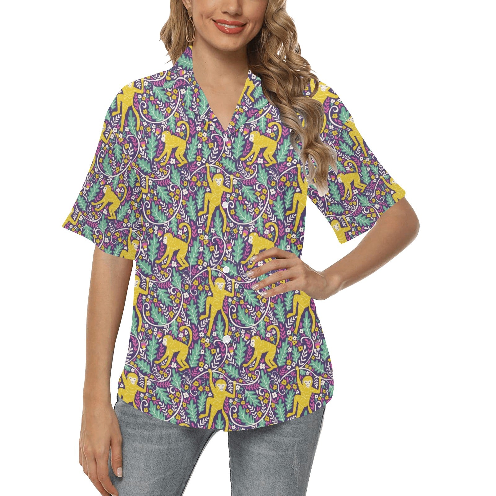 Cute yellow monkey leaves pattern Women's All Over Print Hawaiian Shirt
