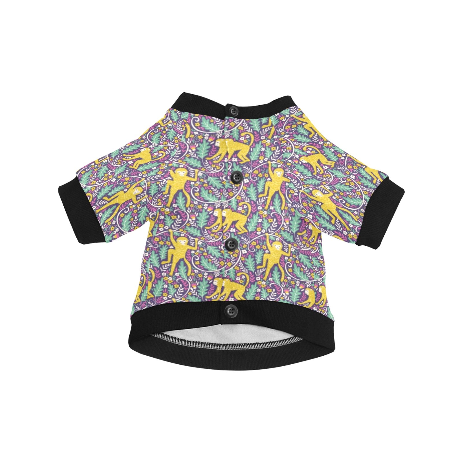 Cute yellow monkey leaves pattern All Over Print Pet Dog Round Neck Fuzzy Shirt