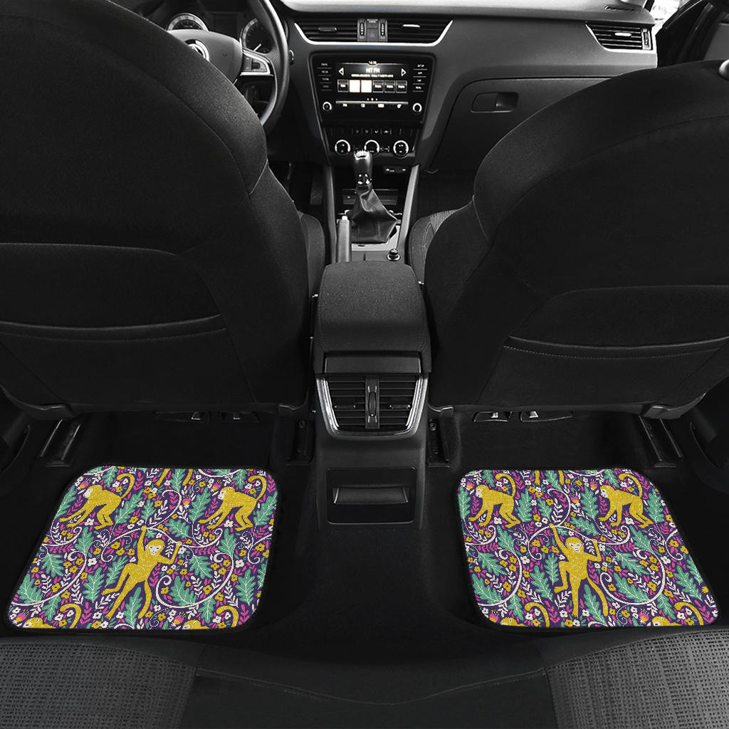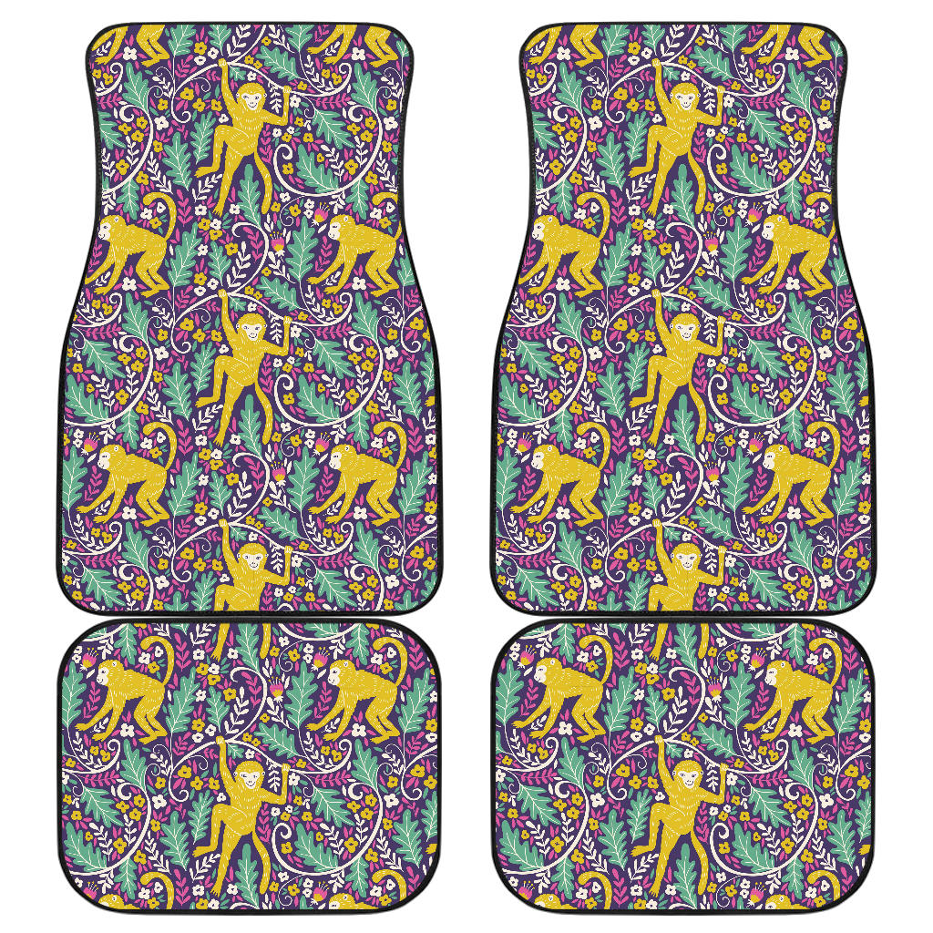Cute Yellow Monkey Leaves Pattern Front And Back Car Mats