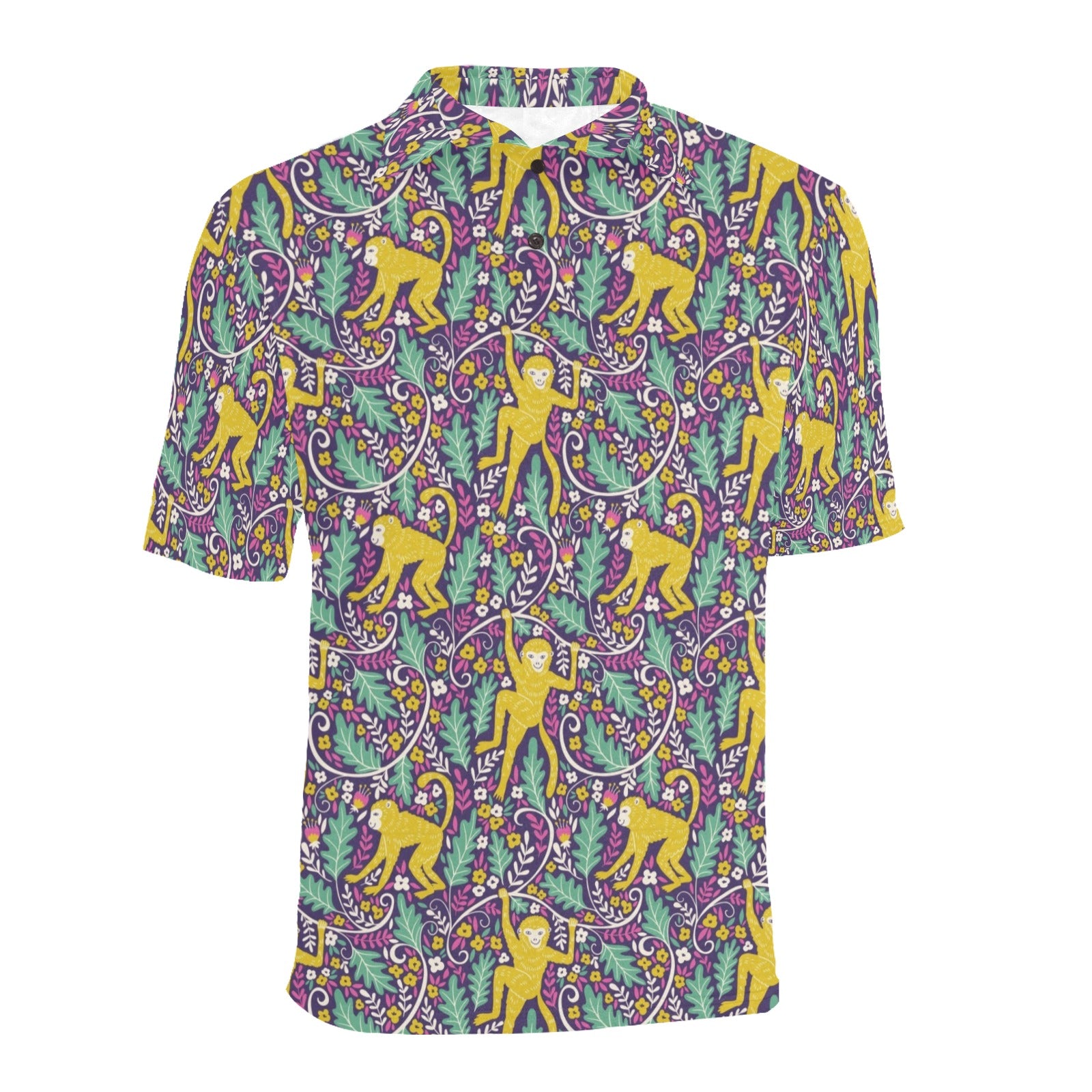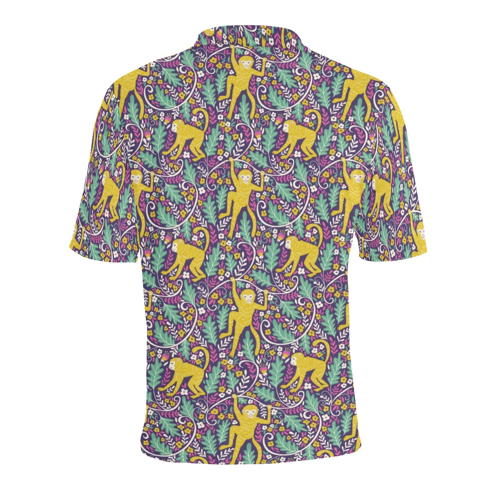 Cute yellow monkey leaves pattern Men's All Over Print Polo Shirt