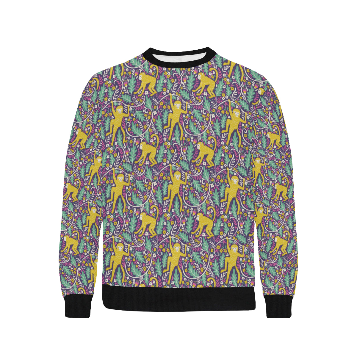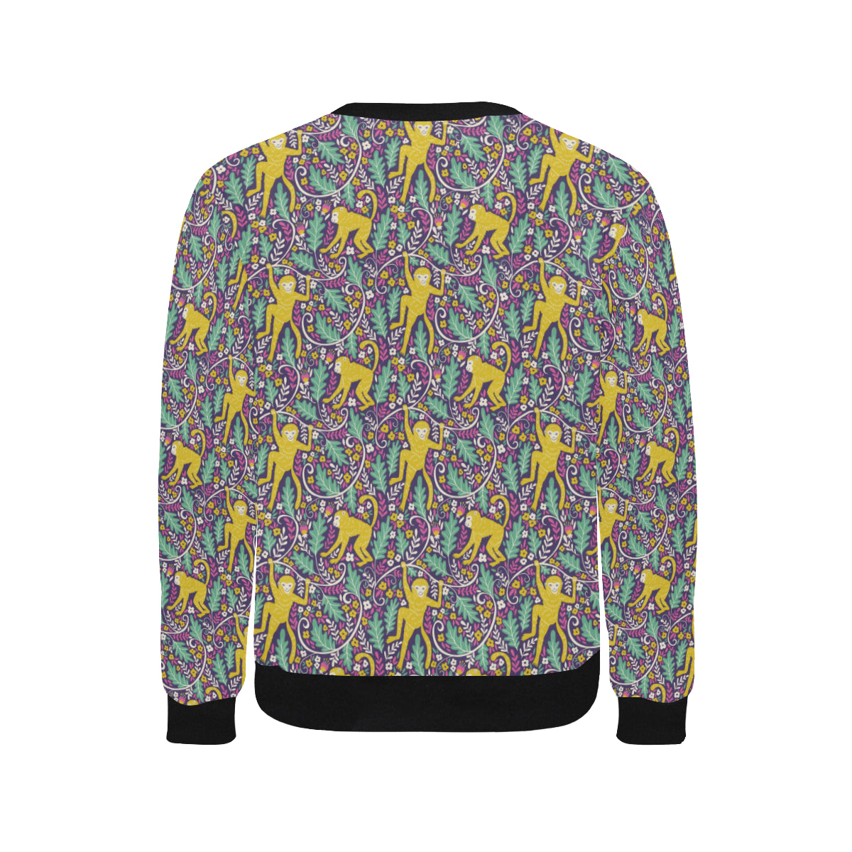 Cute yellow monkey leaves pattern Men's Crew Neck Sweatshirt is a uniqued design and limited item. It made to order, hand printed, and sewn with love in our factory.