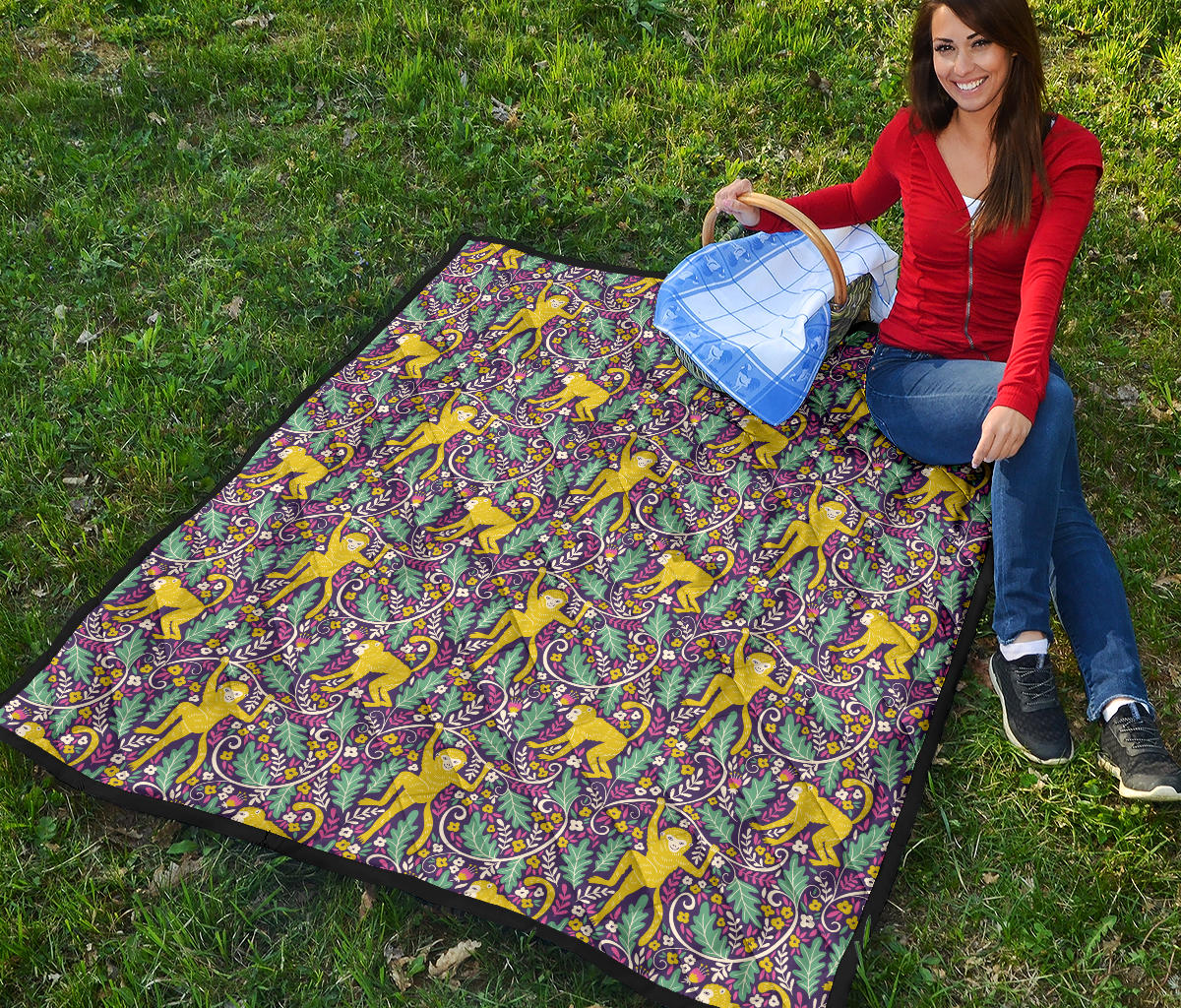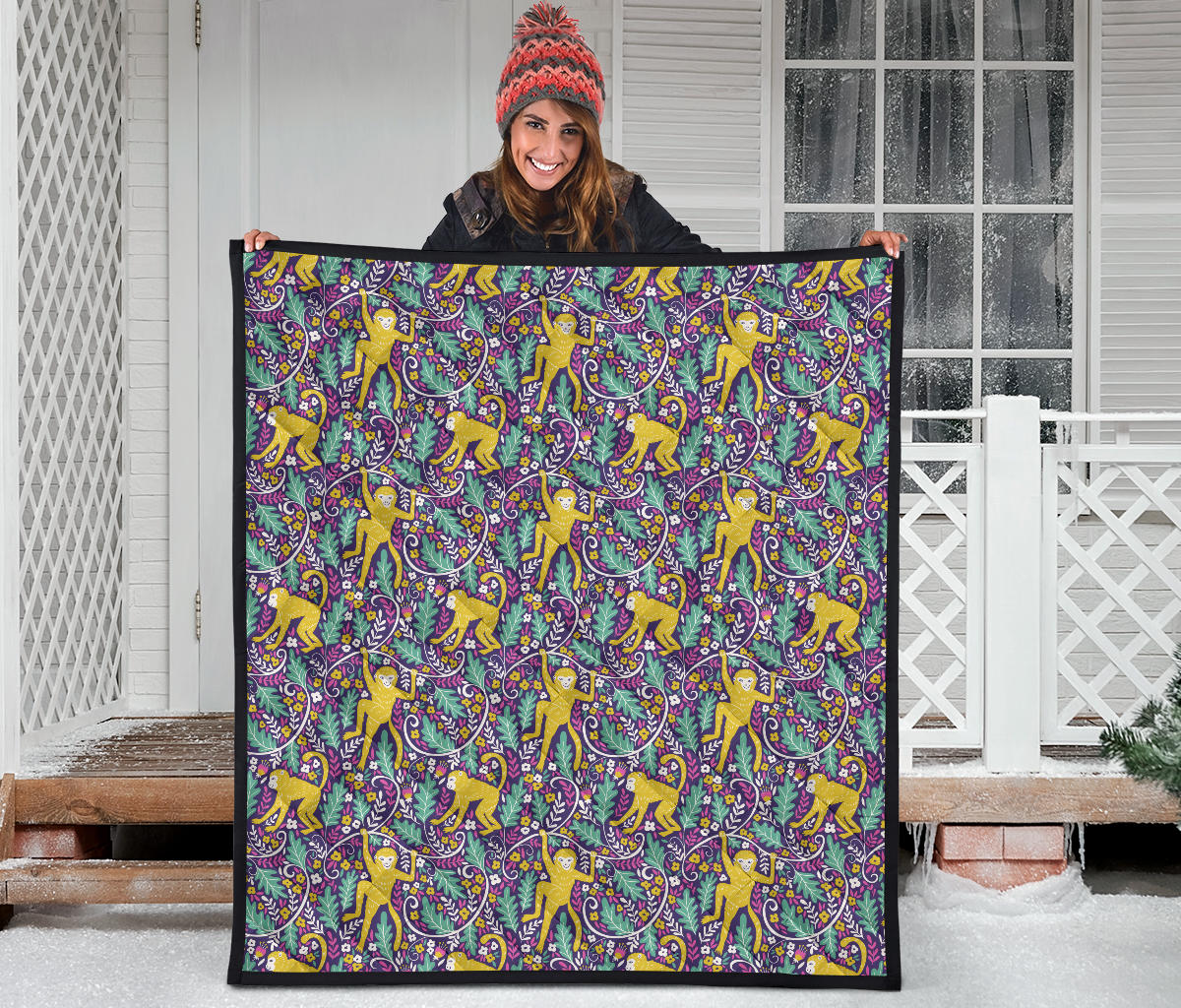 Cute Yellow Monkey Leaves Pattern Premium Quilt is a uniqued design and limited item. It made to order, hand printed, and sewn with love in our factory.