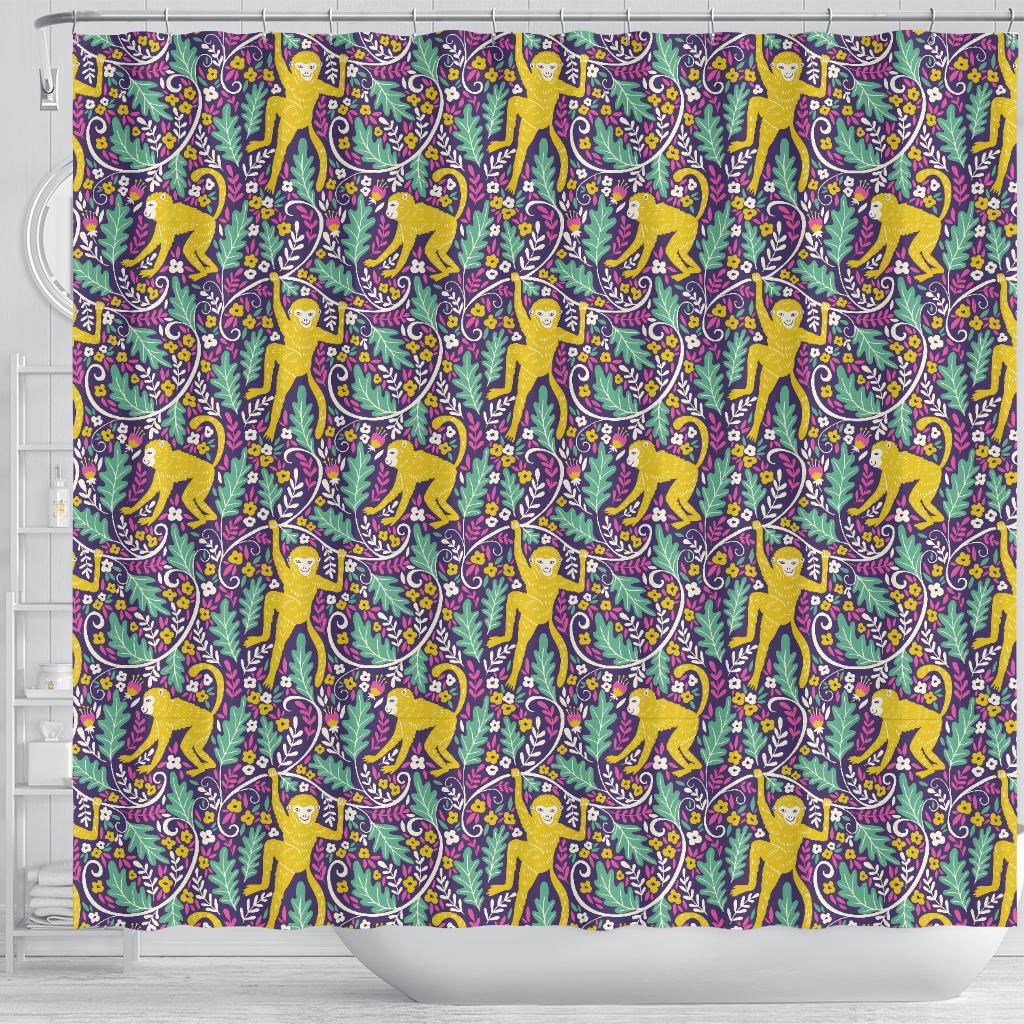 Cute yellow monkey leaves pattern Shower Curtain is a uniqued design and limited item. It made to order, hand printed, and sewn with love in our factory.