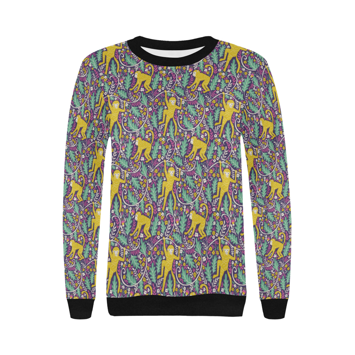 Cute yellow monkey leaves pattern Women's Crew Neck Sweatshirt is a uniqued design and limited item. It made to order, hand printed, and sewn with love in our factory.