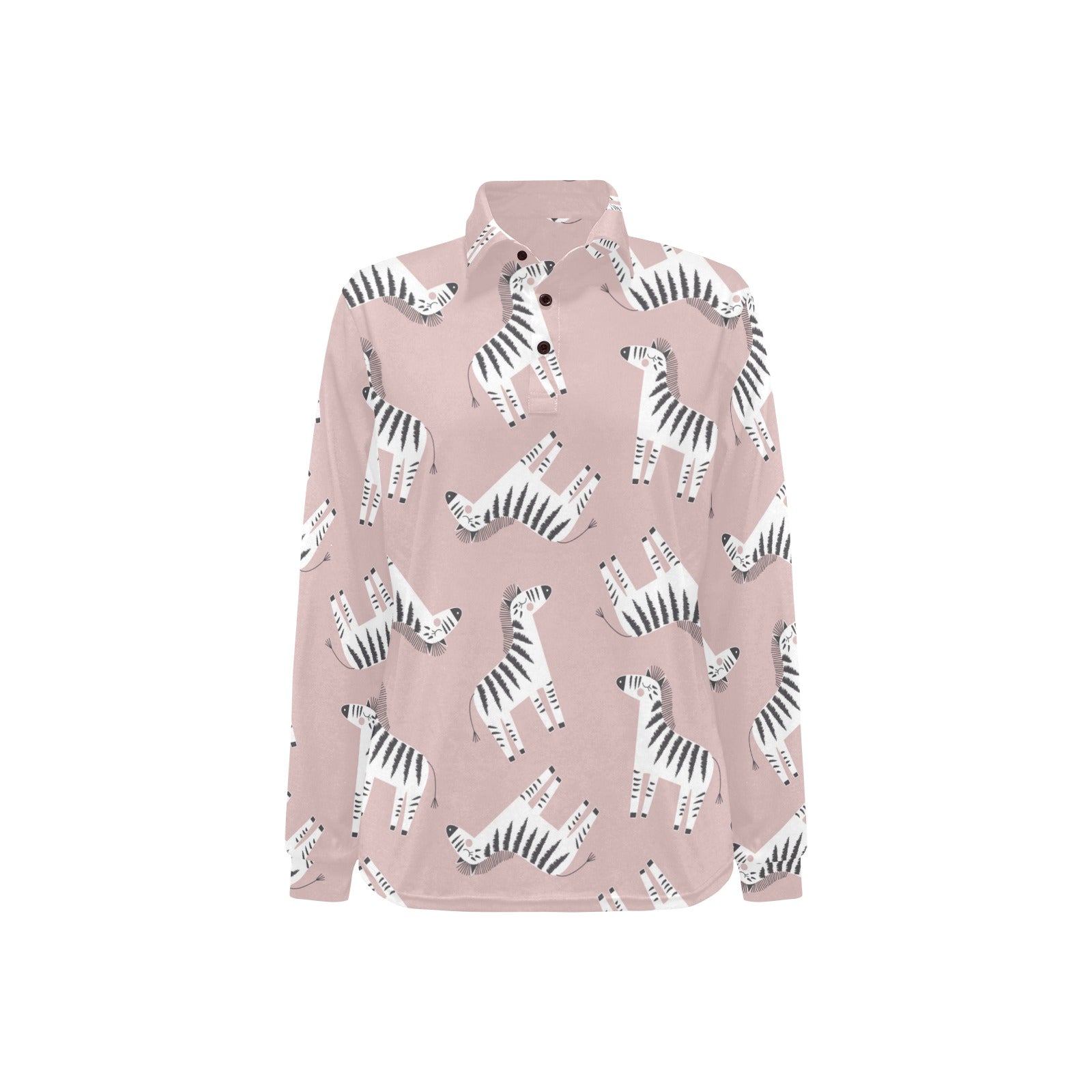 Cute zebra pattern Women's Long Sleeve Polo Shirt