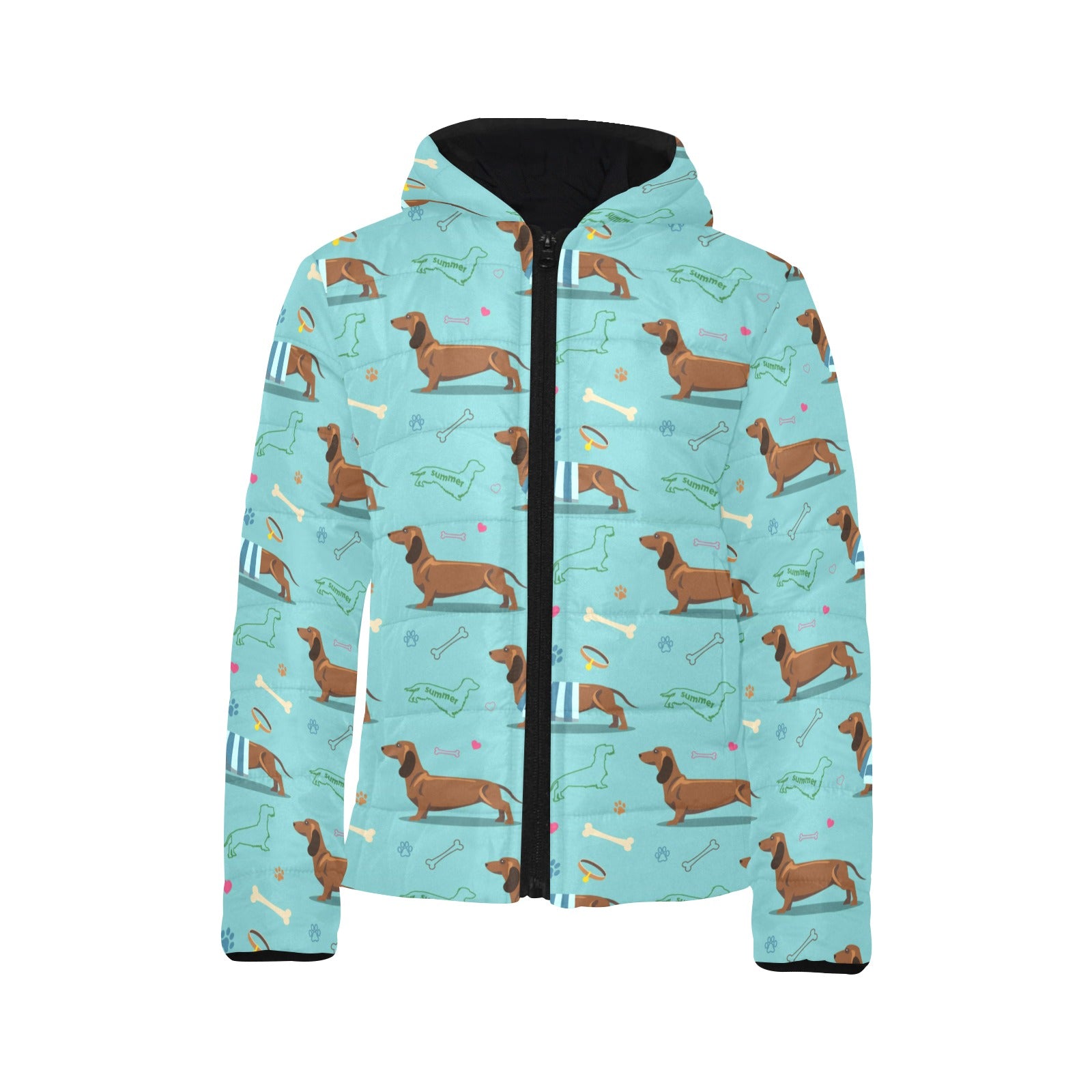 Dachshund decorative background Kids' Boys' Girls' Padded Hooded Jacket